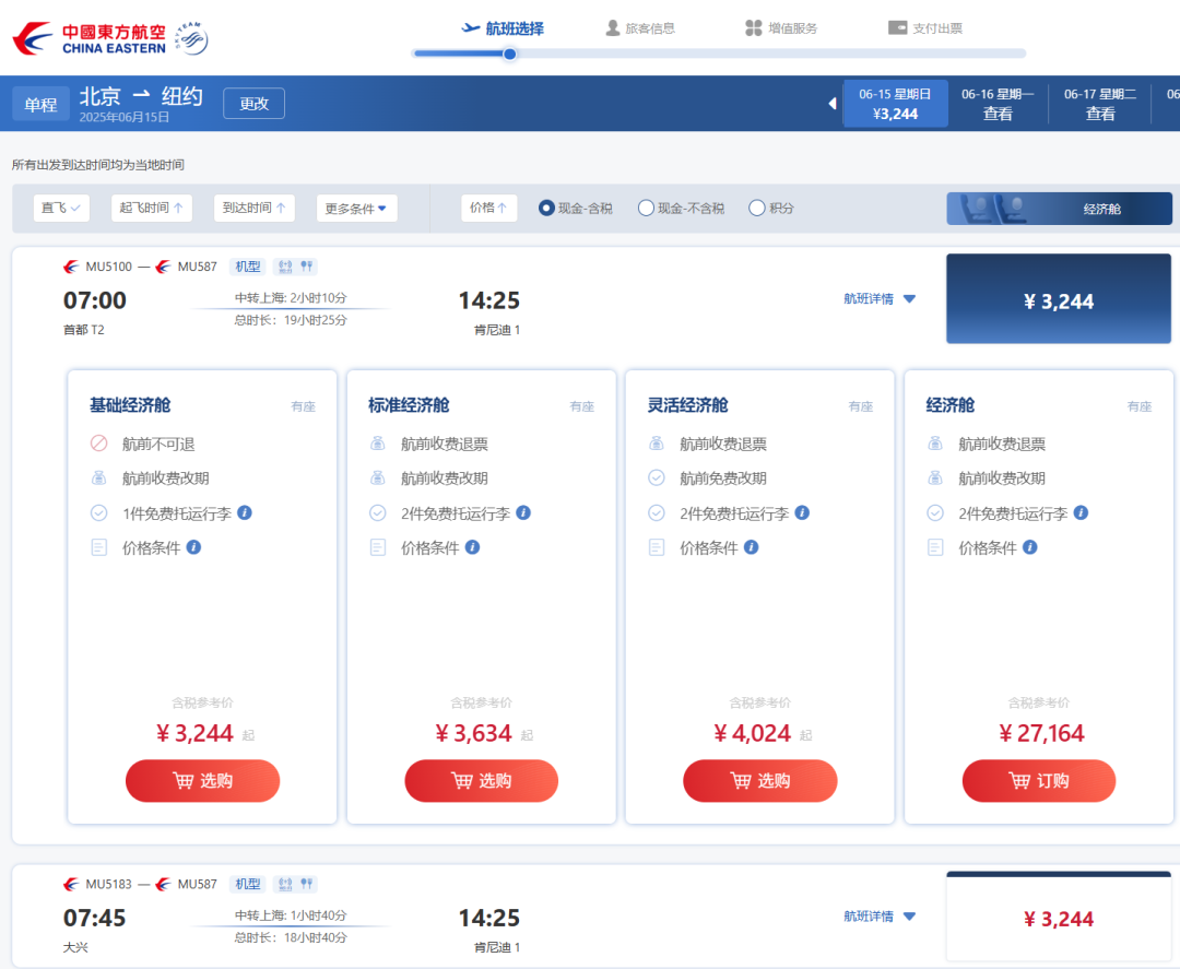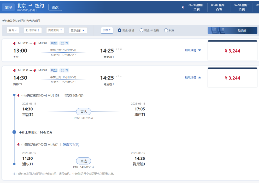 暂时只看到这两天,主要还是因为班次少,东航MU587每周只有周日、周二有航班。但看了一下运价,最晚6月22日之前出行,也就是说,只有6月8日、10日、22日,有机会上这个票了~