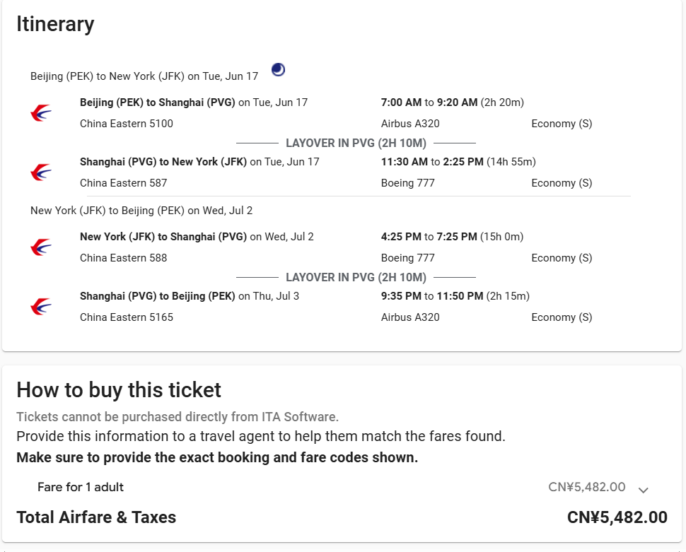 但因为10-21天内回程东航没有S舱,真实的回程价格要翻倍了……