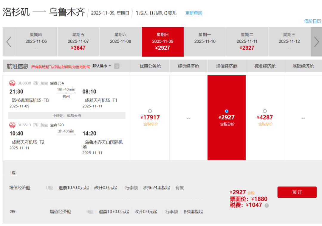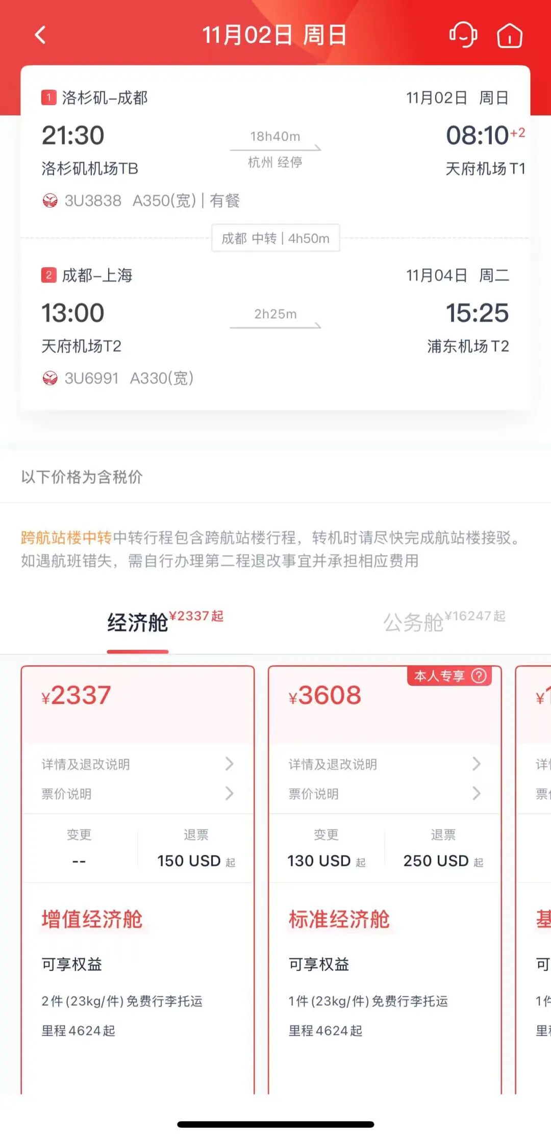这张票比较适合住在华中、西北、西南、甚至华南地区的同学,相对不绕路,飞行时间好。而且还有2件行李,比较难得~