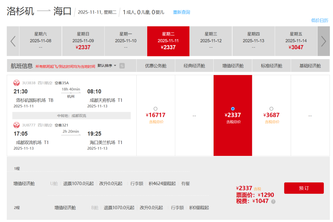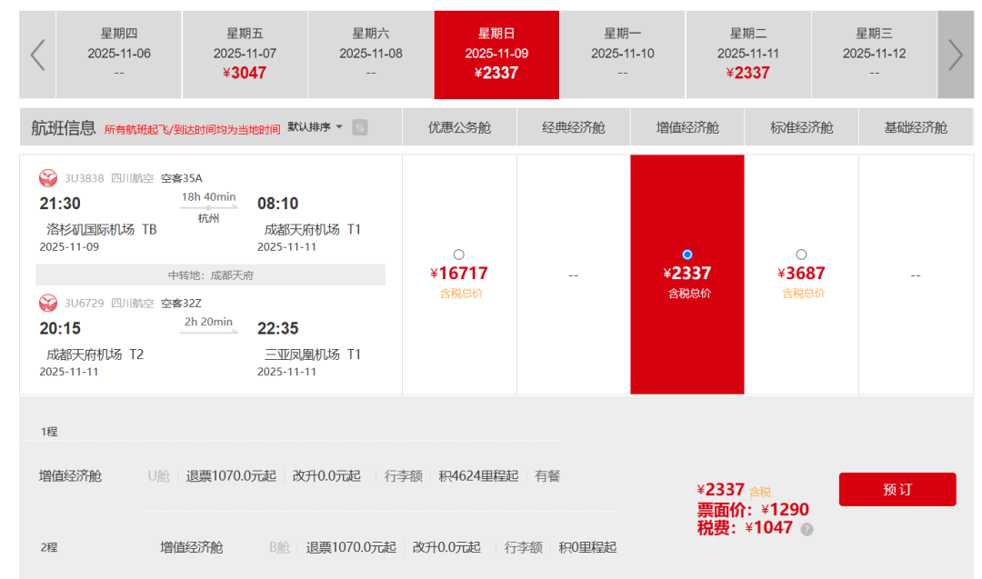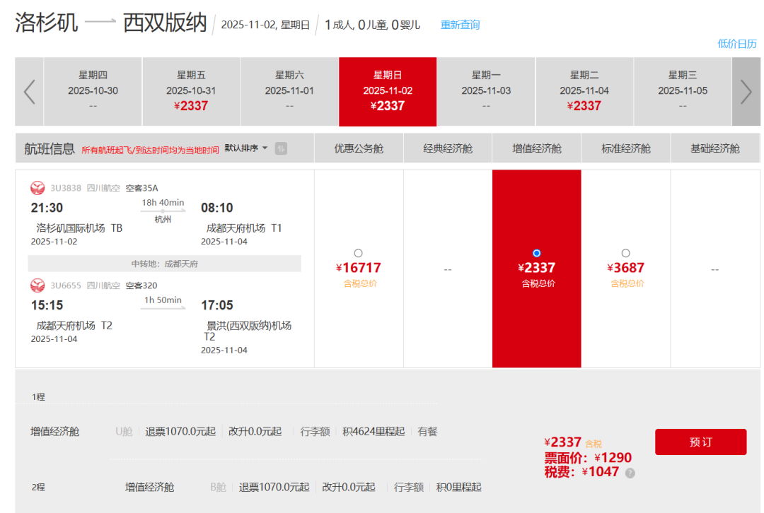 家里不在北上广?没问题,很多城市在官网买票也是2337元(第三方价格可能更低)