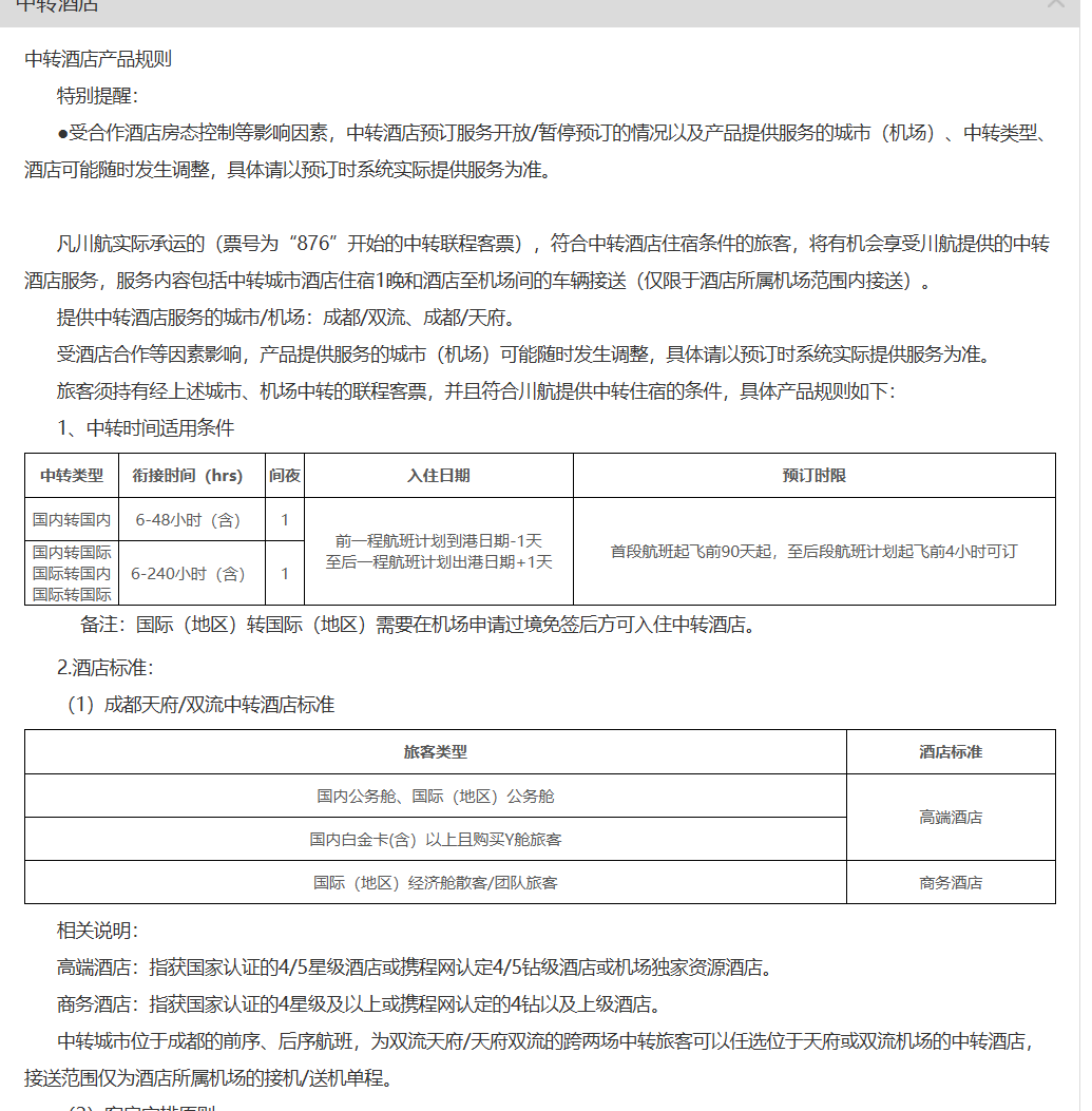 根据川航网页,国际-国内的乘客在成都停留超过6小时,即可安排住宿了,但需要事先预订哦~