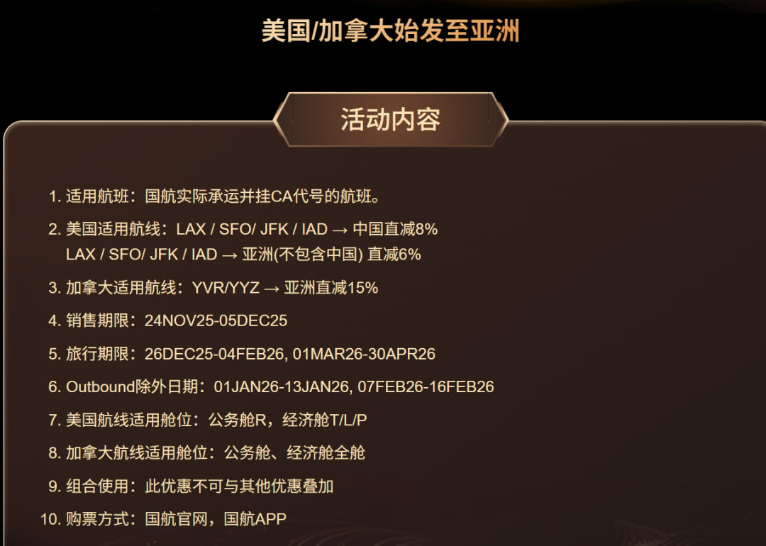【促销内容】北美始发航线,最高直减15%