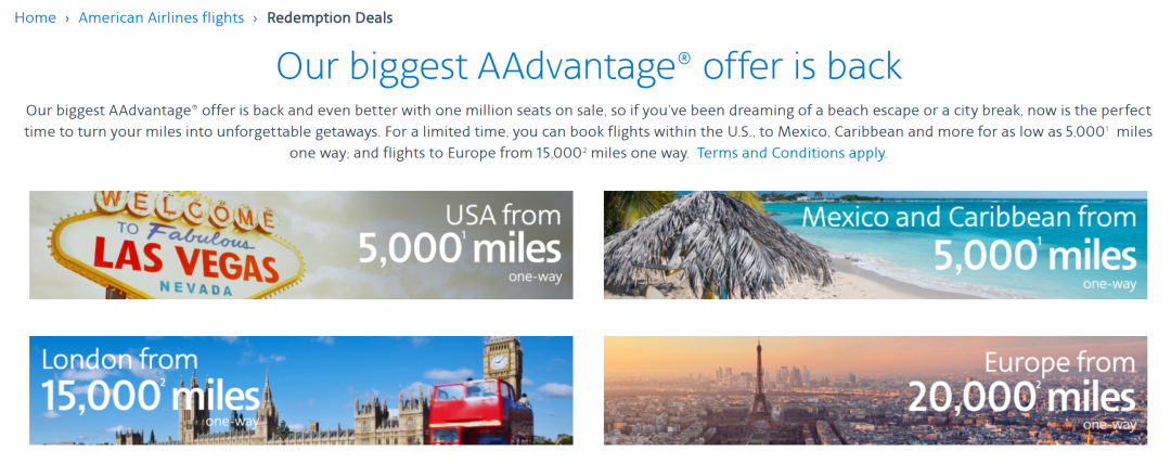 美国航空在无预警的情况下,推出了大量低价里程兑换,涉及美国国内、欧洲和加勒比等航线,最低5k起,一路放到明年4月都有一些票。