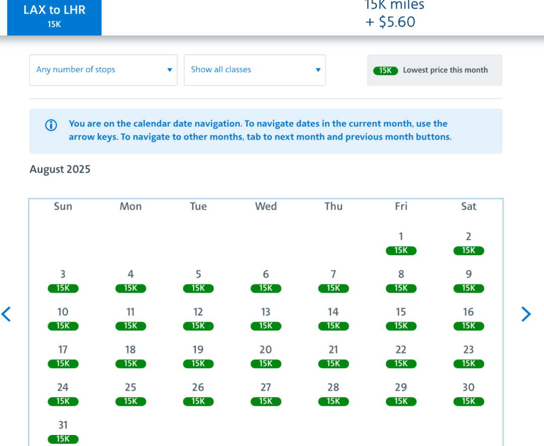 15k里程起+少量税费(美国-伦敦双向航班)
