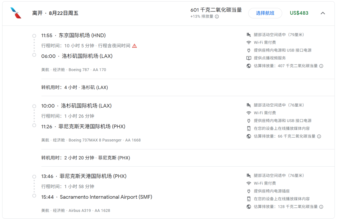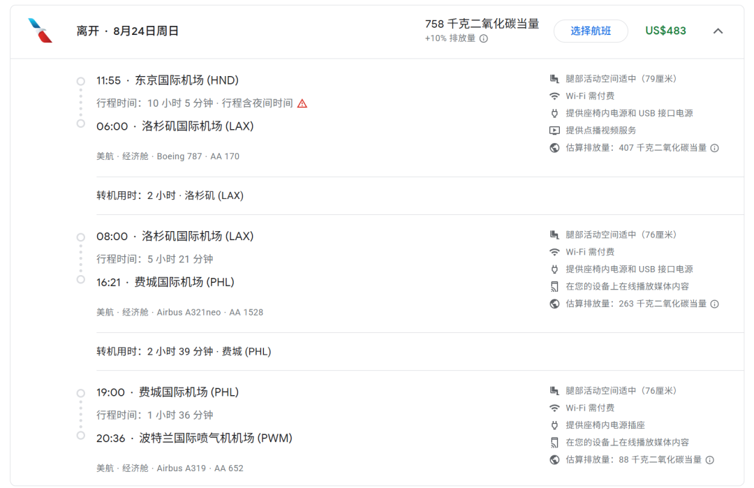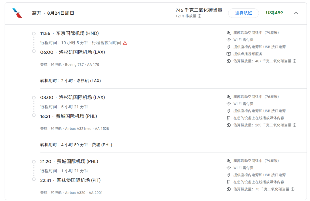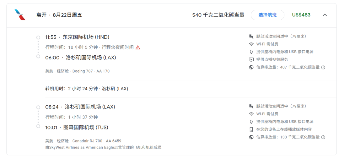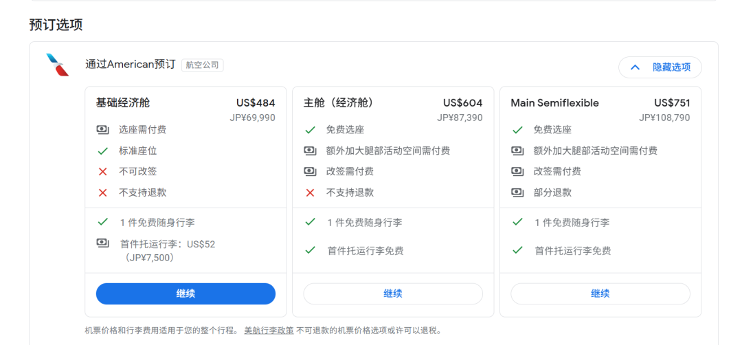 AA- O(基础经济舱/普通经济舱,东京-美国),