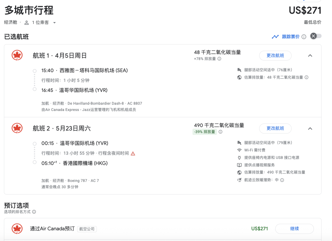 比如复活节假期去个西雅图,然后5月底再回香港 (居然可以把回程延后到5月23日)