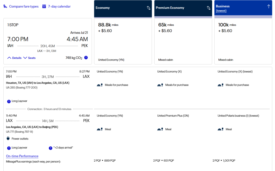 根据观察发现,这条航线若在起飞2-3天前有大量的商务舱空余J9 且座位图空一大片,会放出I舱,可供所有美联航会员兑换~ 【此时PZ舱也开放,你也可以使用里程+现金的方式自助升舱】