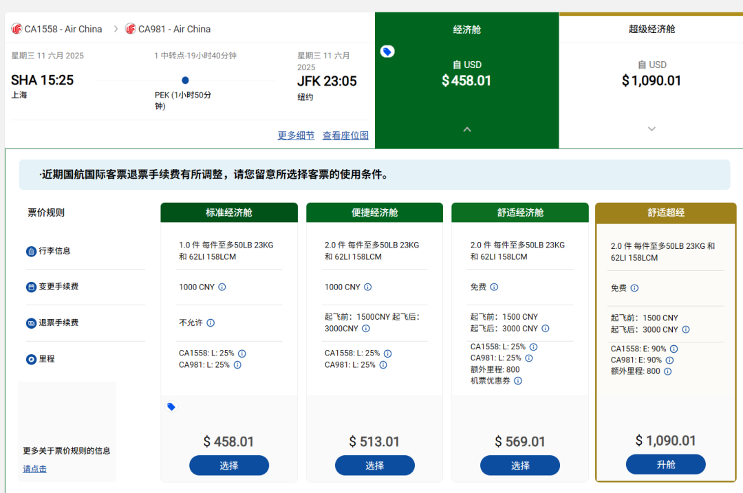 (截图来自国航官网)