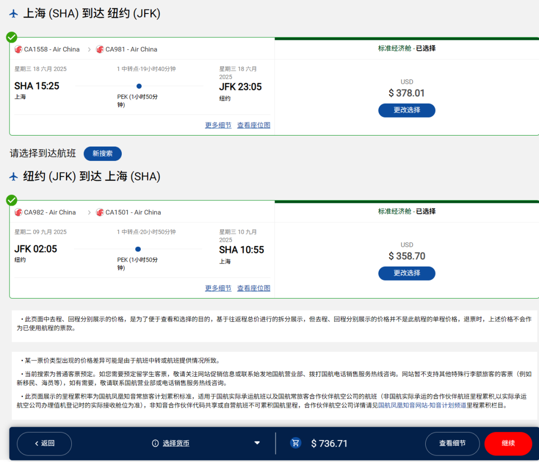 如果是上海-纽约往返,737美金
