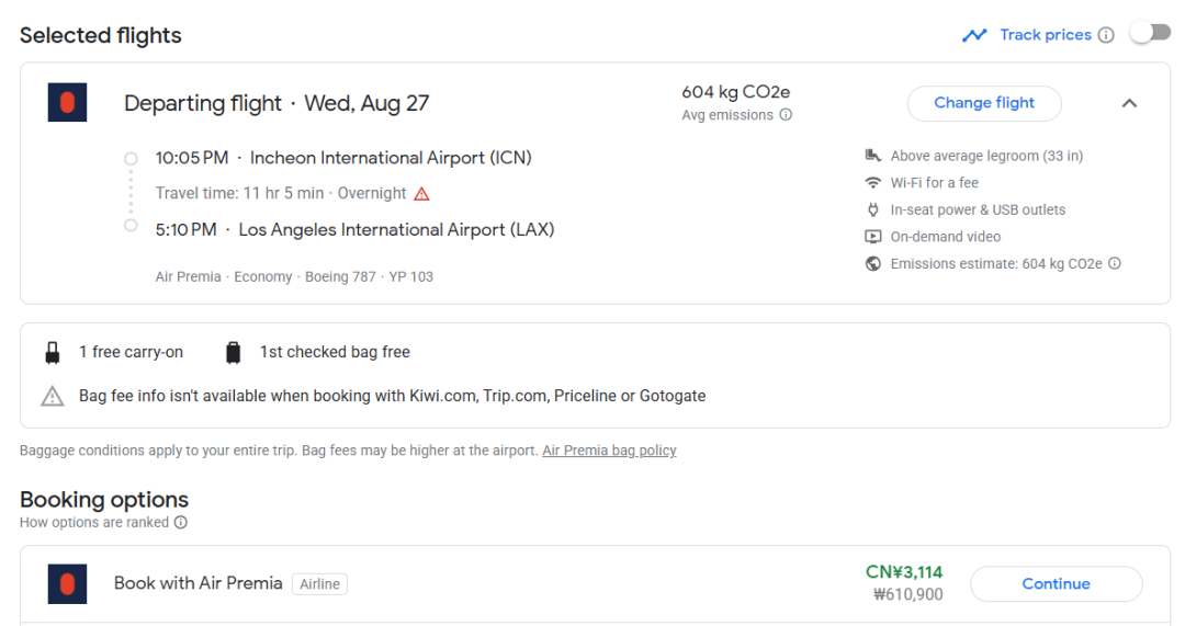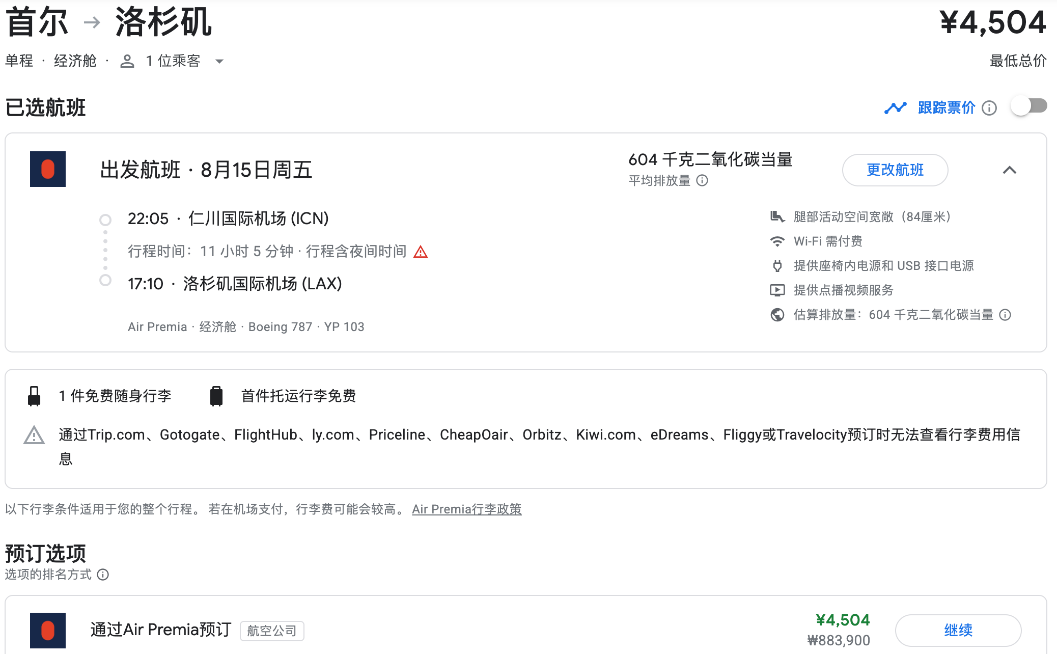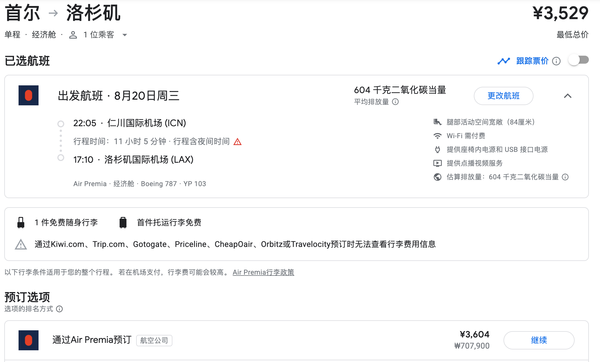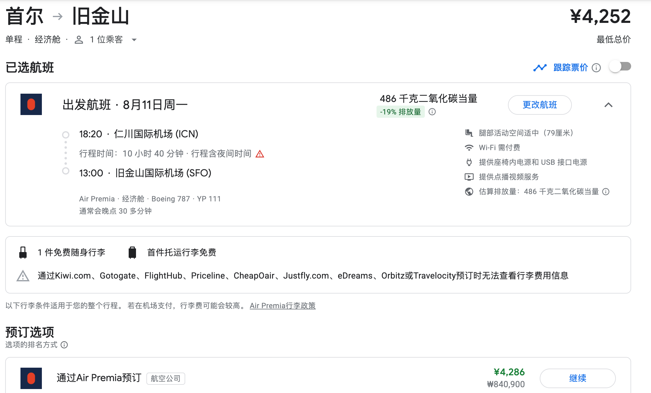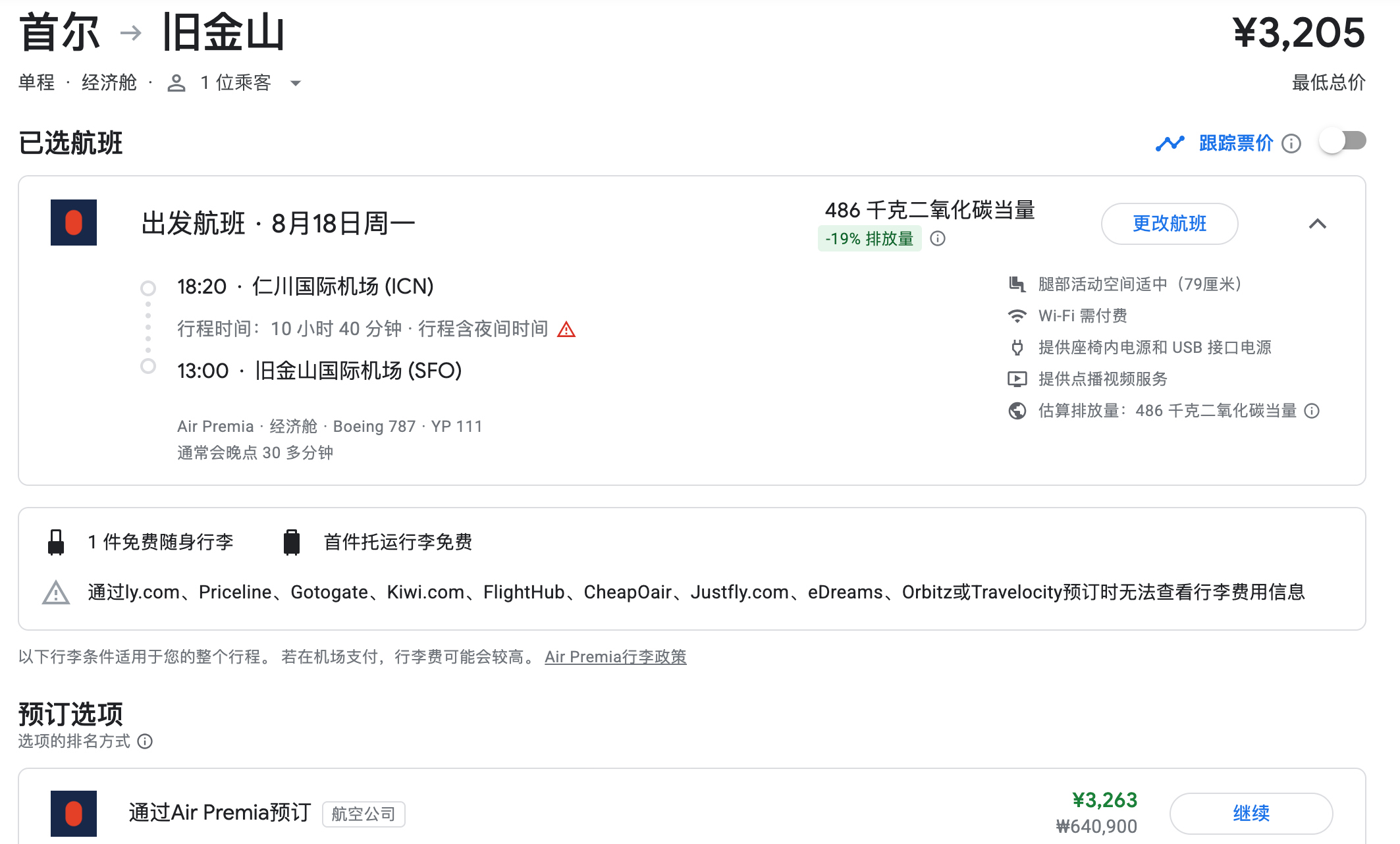 1)我开始以为是AIR Premia是一个廉价航空,但他们其实是混合型航空。看了Eliot Zhang同学写的飞行体验《听说你们想飞廉航Air Premia 韩国转机》。对于这个旺季,3000人民币左右的价格真的很难得,而且航班基本都是晚上出发(旧金山18点/洛杉矶22点),适合衔接前序大量中韩航班。
