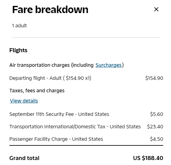 我看到了一下净价BASE FARE应是123美金,那么燃油附加费肯定少收了~