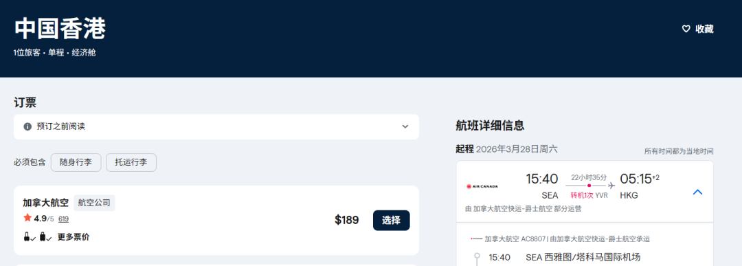 比如4月先去西雅图飞第一段,然后11月再飞第二段去香港