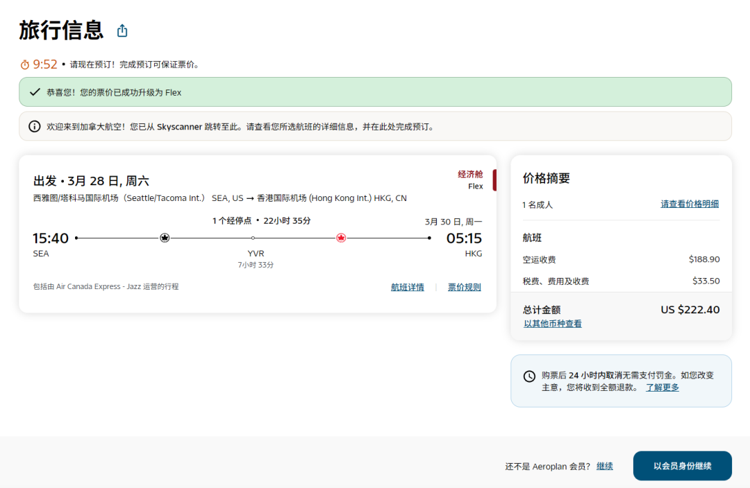 piao.tips/skyscanner 跳转到 加拿大航空官方渠道aircanada.com
