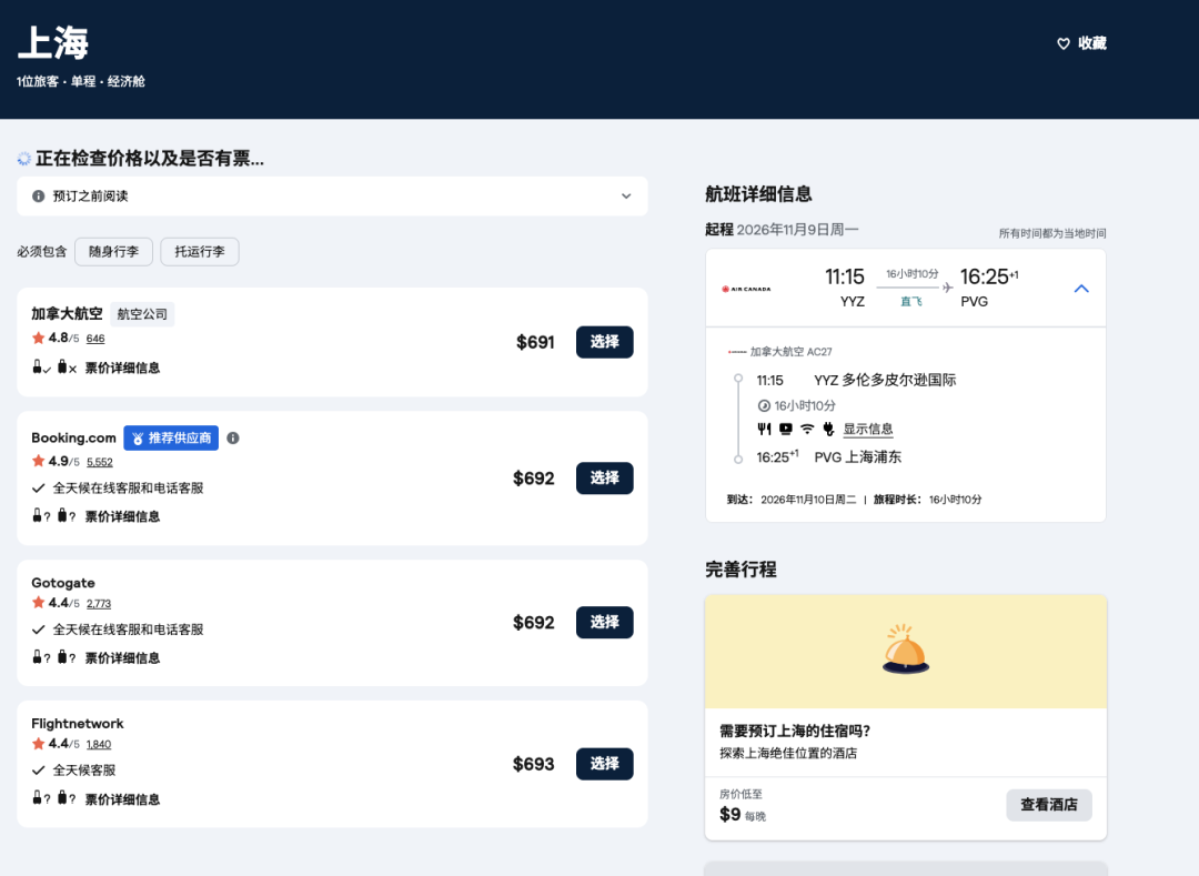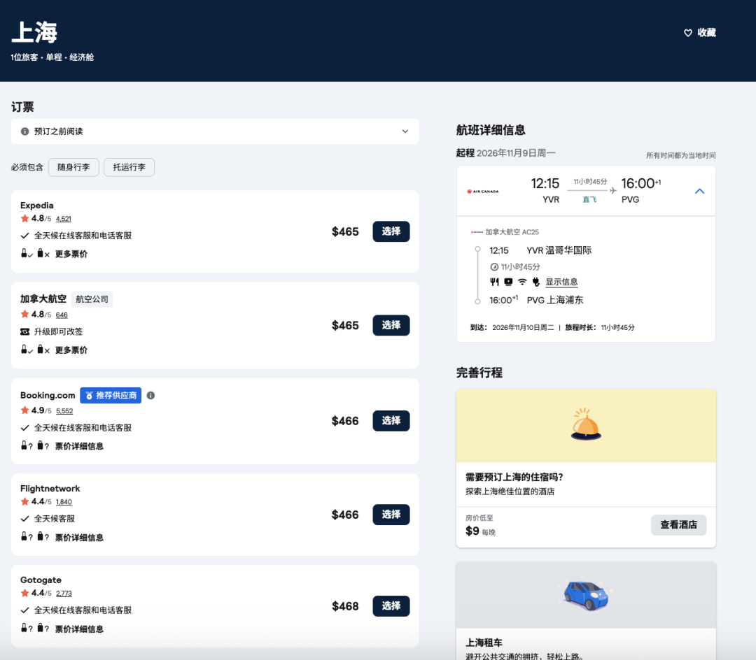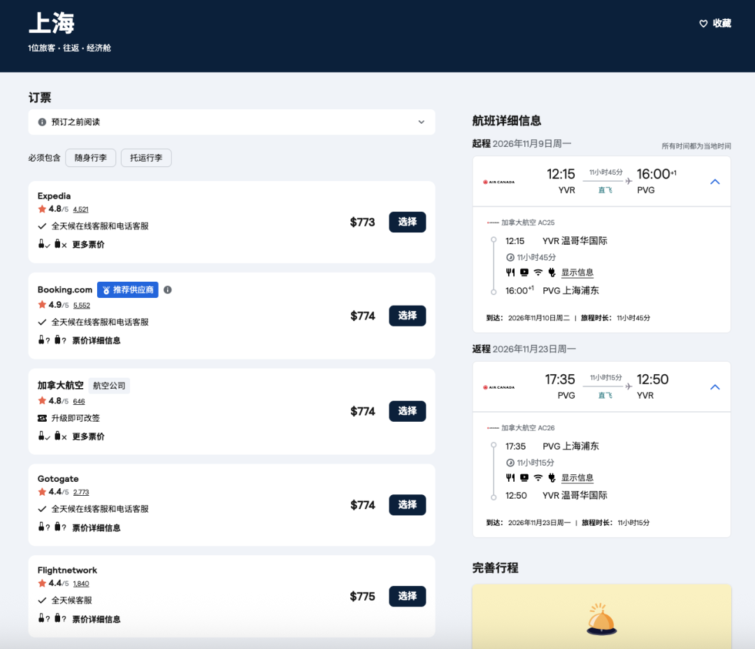 即使你不在多伦多/温哥华,全国联运的选择也非常好,比起其他转机选项价格更低、时间也短很多。