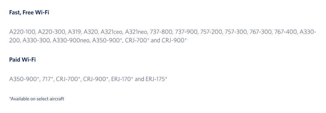 美国航空在2026年起将为AA会员提供免费的上网体验(ATT赞助),涵盖90%的机队。再此之前,按照机型分的:
