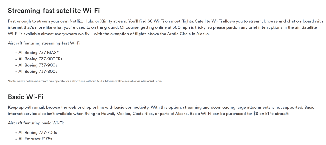 1)主线窄体飞机(A321、波音737-800),高速WiFi。可按小时收费或全程一口价(最低10美金起)。