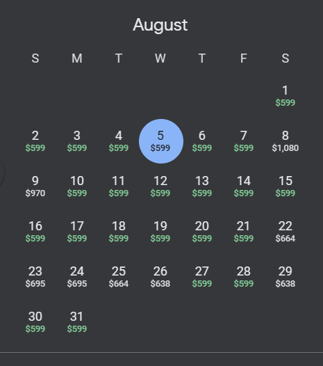 同样地,8月飞纽约更是一票难求了~ 或者说“贵得一X”了