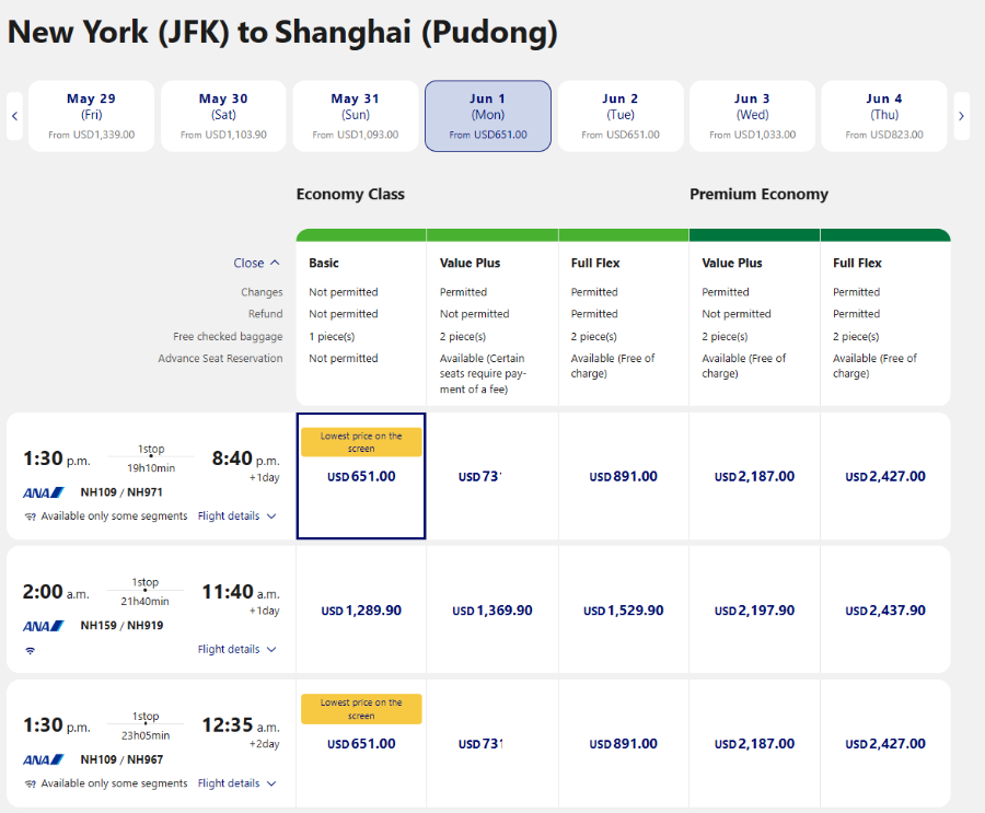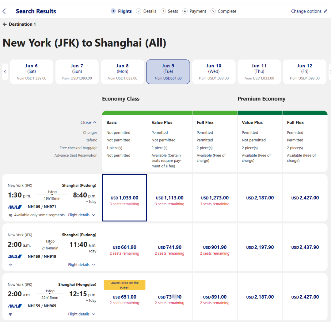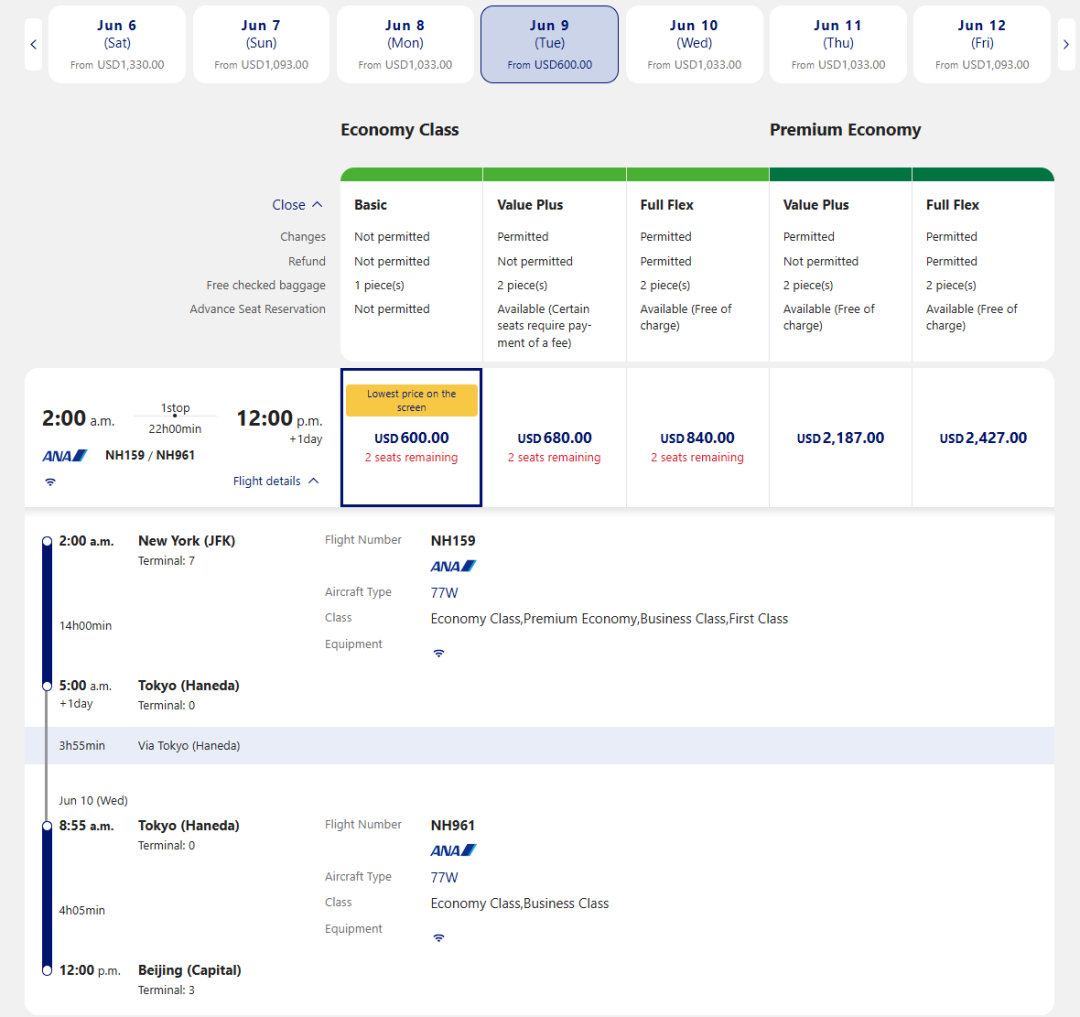 (截图来自机票网站/航空公司官网)