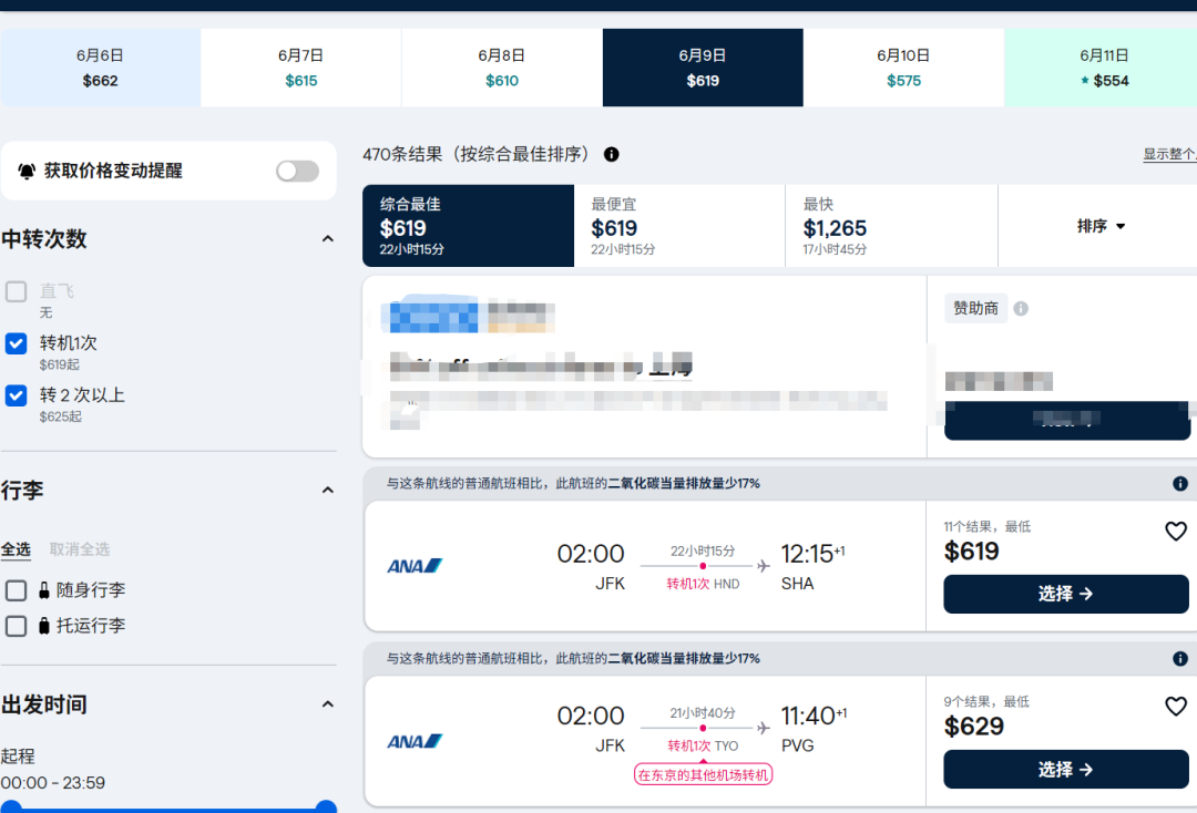 纽约JFK-东京羽田-上海/北京