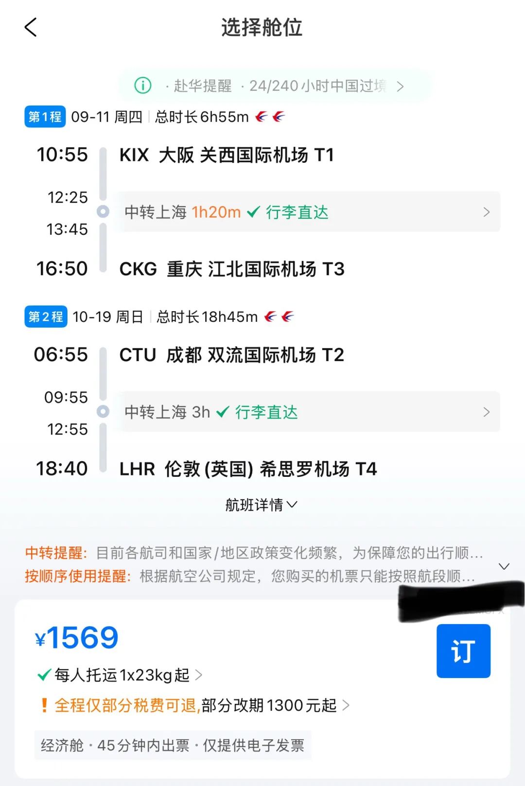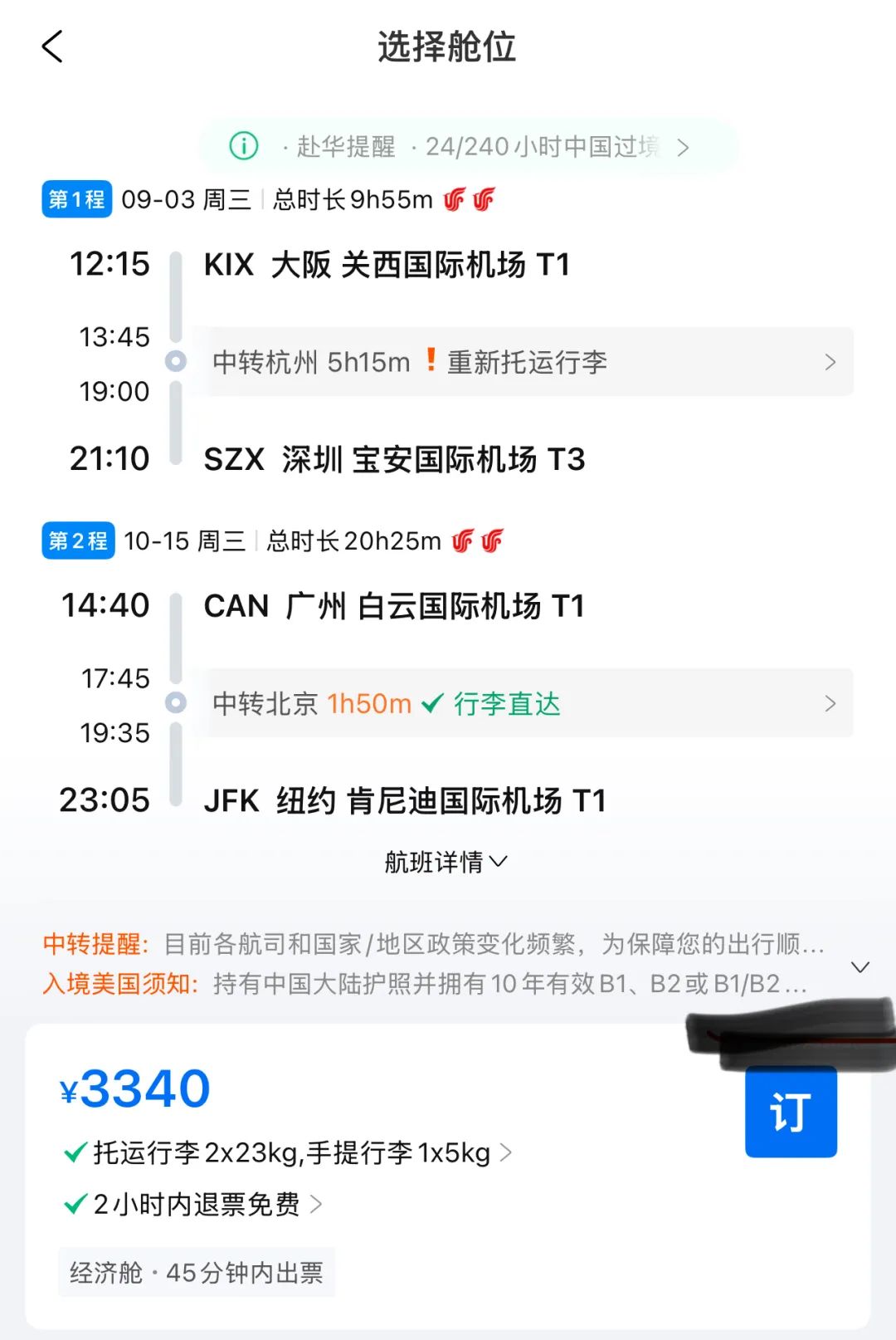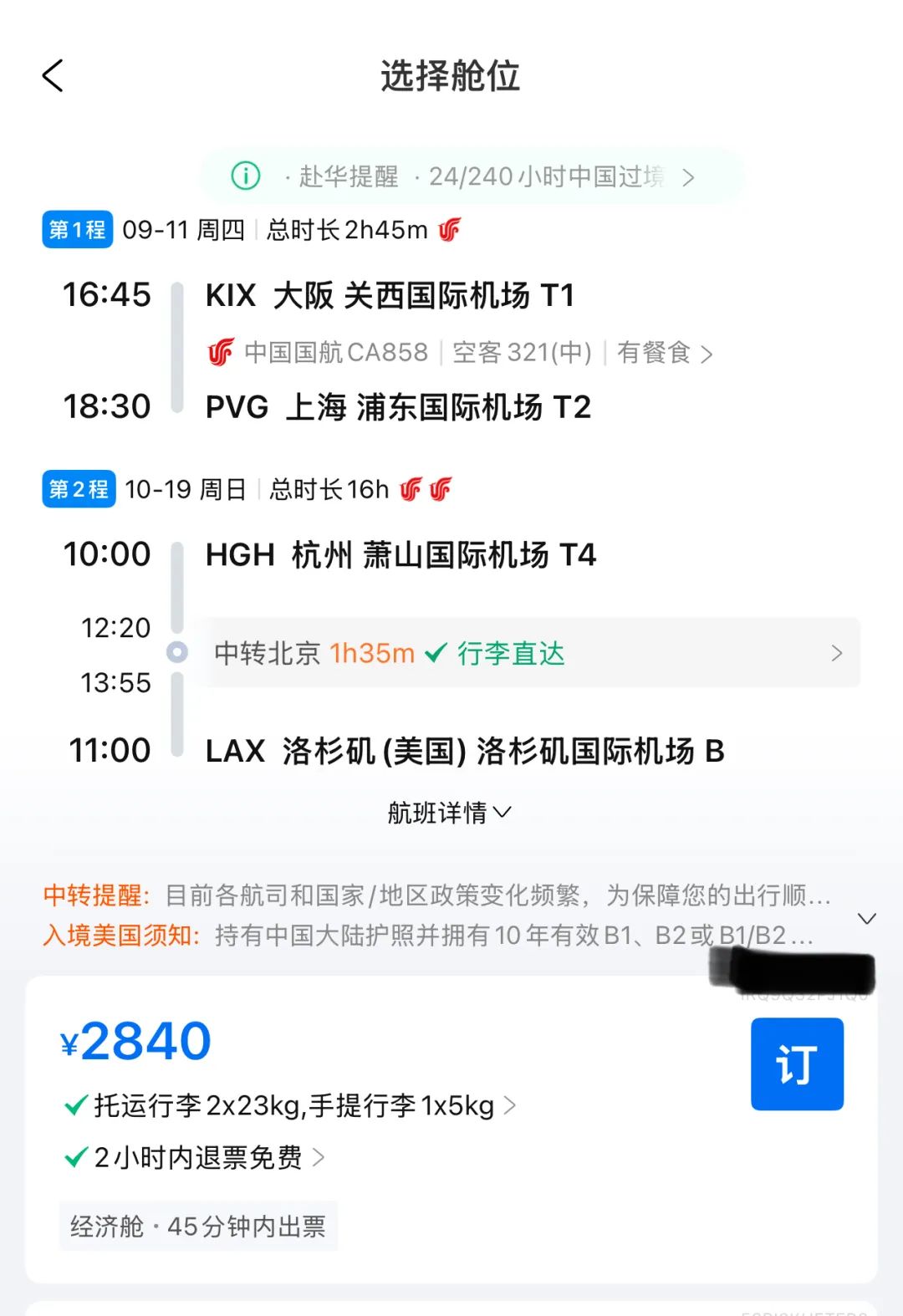 关于“含税1k5国内飞欧洲,2k8不到飞美国”的“BUG”漏油票关于“含税1k5国内飞欧洲,2k8不到飞美国”的“BUG”漏油票By yida | 2025年8月17日 本来今天文案都准备好了,有粉丝问我,xhs上说的bug票,觉得如何… 于是在朋友家用手机打的,就不排版了…我看到最早的版本是 xhs网友 @黑米Rémi 发的….【行程举例】 【原理】第一段:大阪-国内城市1***停留几天到几个月***第二段:国内城市1 或 2- 部分国际航线 (包括部分欧美航点航司:东航、国航测试过的美国加拿大航点:洛杉矶、温哥华、纽约旺季:例如1月初赴美,价格还是要10000多人民币运价:从ITAsoftware 上看是日本-中国 (国航P舱/ 东航Z舱) 和 中国-欧美(国航L/P舱,东航Z舱) 两个单程运价的叠加,但燃油附加费少收了,例如单独买10.19 国航 杭州-北京-洛杉矶 单程需要3300 人民币。日-中-美 燃油附加费 578元,但中-美,燃油附加费1150元(多了一倍) 基于这个原理,只要找到日-中段尽量低的运价(比如大阪-上海 机票不含税仅165人民币),后面叠加中-海外段的低价,应该能找到很多组合。 我要跳这个deal嘛?如果刚好要去大阪,且之后有去欧美的计划,这张票非常好~但如果为了用这张票而去大阪飞,那好像有点得不偿失…你需要算算综合成本。欢迎投稿票帝还能怎样帮到你?如何用好“北美票帝”,让你的出行省钱省力? 「降价啦!」美中国际文件速递,美国国内文件速递,跨洲大件搬家:piao.tips/shipping【人在中国,出境别忘了】买旅游保险:已在国外,既有病也有产品!航班延误险:代赔付,送休息室券,甚至3年内航班有机会赔票帝的付费问答业务人在北美,出境买旅游保险,符合申根签证要求,还有延误险哦 ×用微信扫描并分享