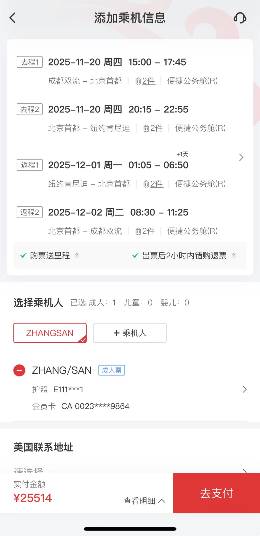 比如,某位在京工作的家长,要把重庆老家的娃娃送去美国留学~ 临走之前,先自己买票回重庆帮娃收拾行李~ 然后利用7月下旬这张票回北京,用一周时间交接工作,7月底接着飞纽约和娃一起安顿下来~  8月中,从纽约飞回国~最后,在2026年春节前的时候,用这张票的最后一段飞回重庆过年(春节前飞川渝机票的价格,懂得都懂)~