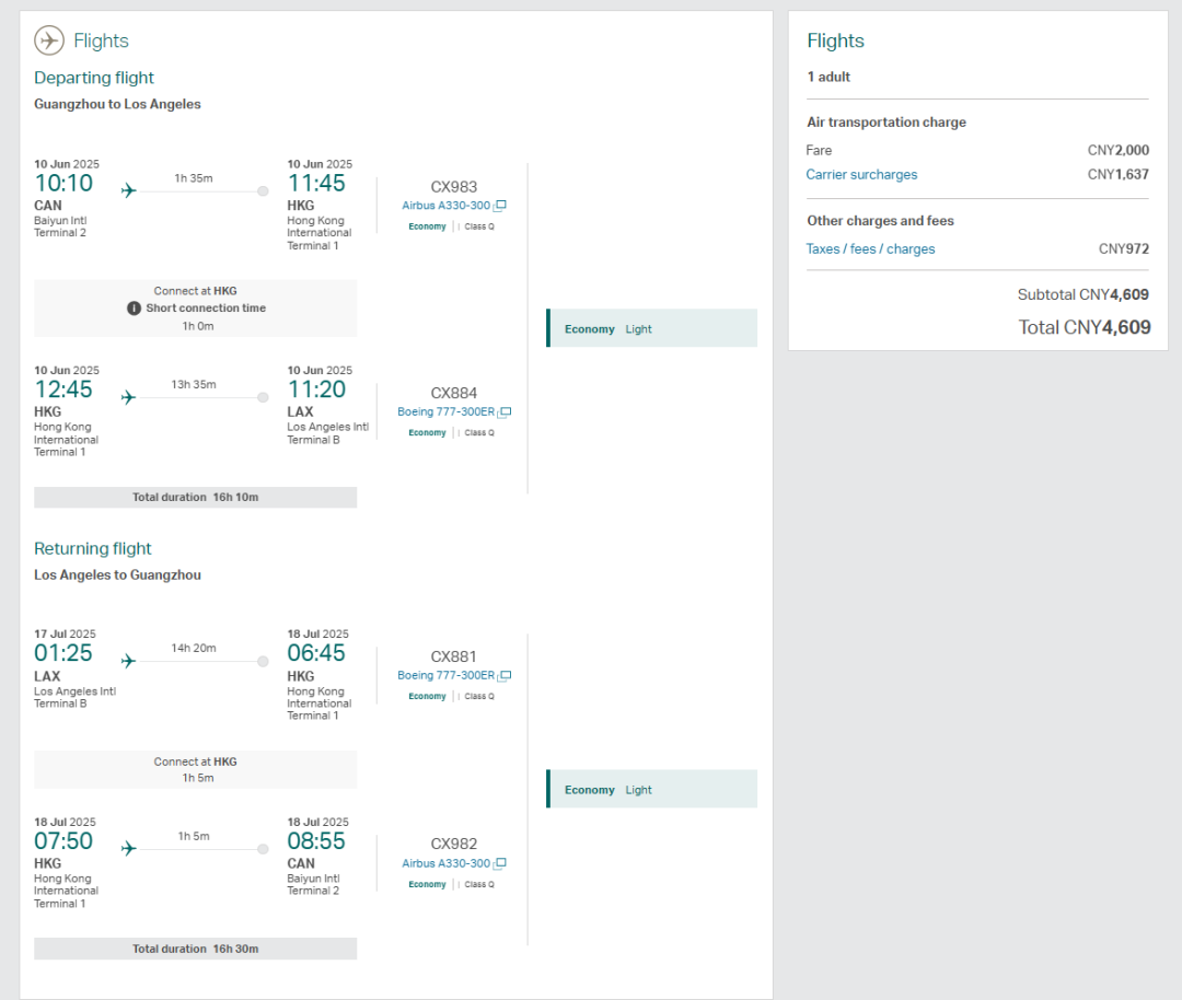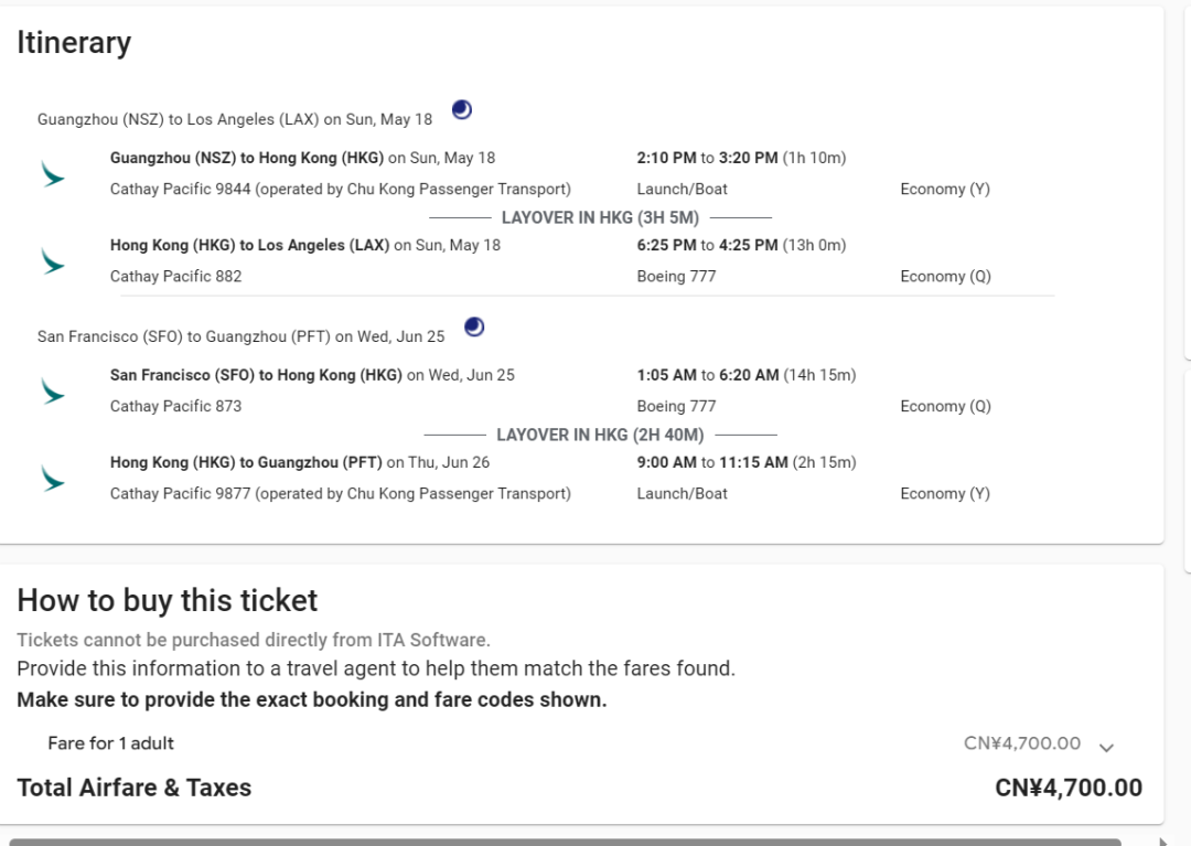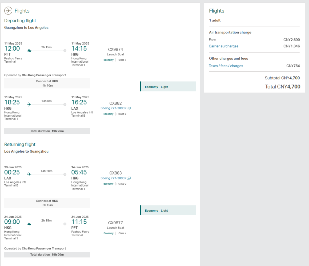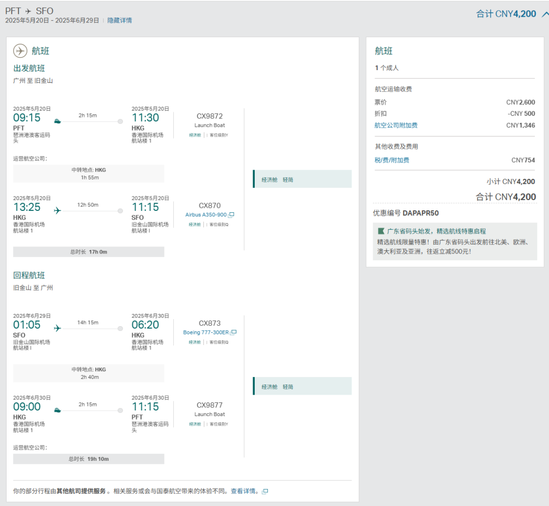 广州码头-香港机场,香港直飞洛杉矶/旧金山