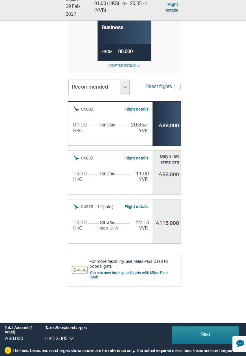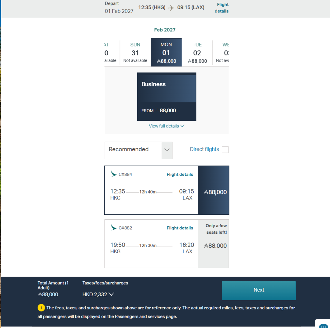 88,000国泰里程(西海岸)