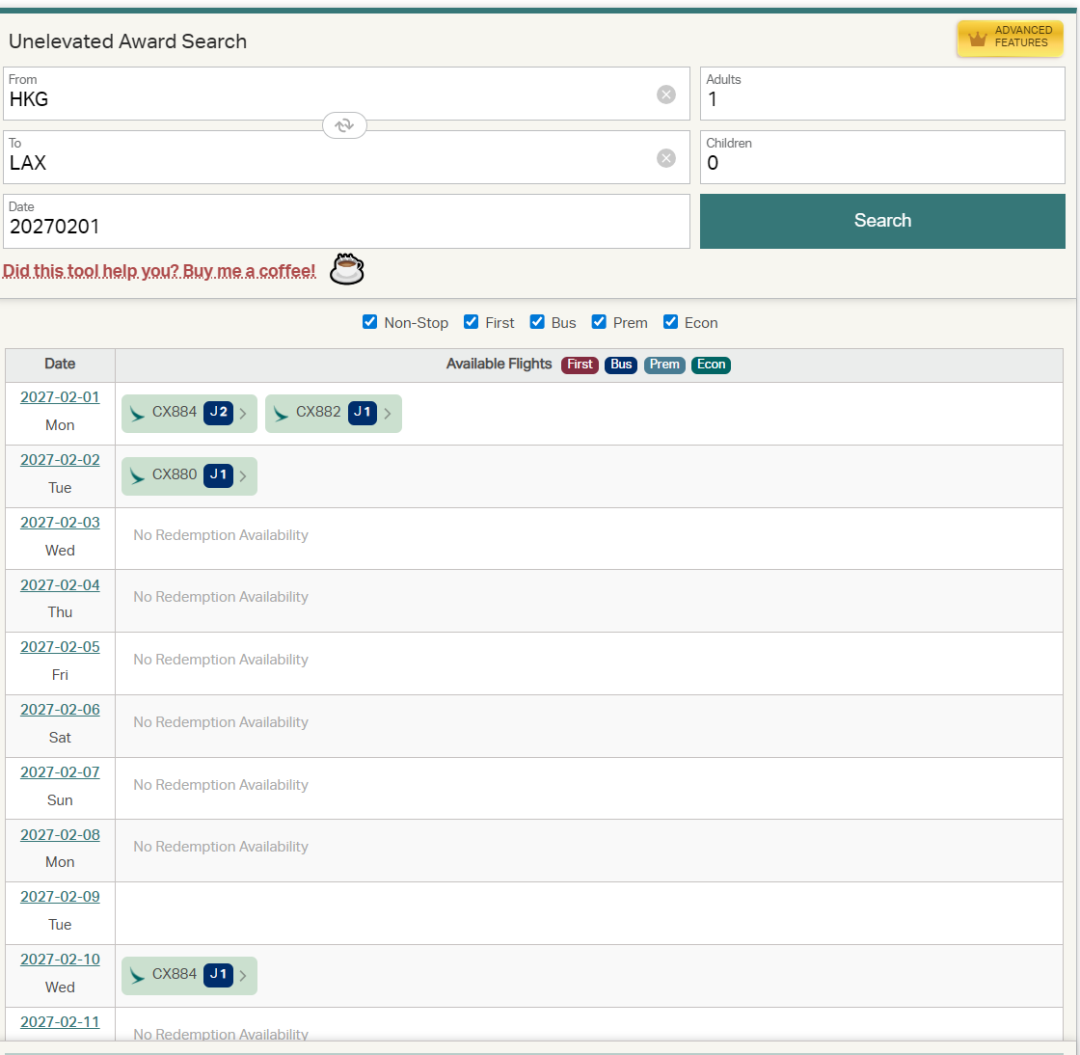 由于国泰是按照飞行总里程分段计费的话,若飞行距离超过7500里程(如上海-香港-洛杉矶),需要的兑换里程就和东海岸回国一样了。【香港-洛杉矶 的飞行距离约为7260英里,非常接近7500英里了,或许广州可以】