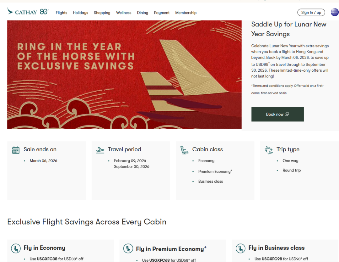同理,国泰其余北美城市,也参与新春促销