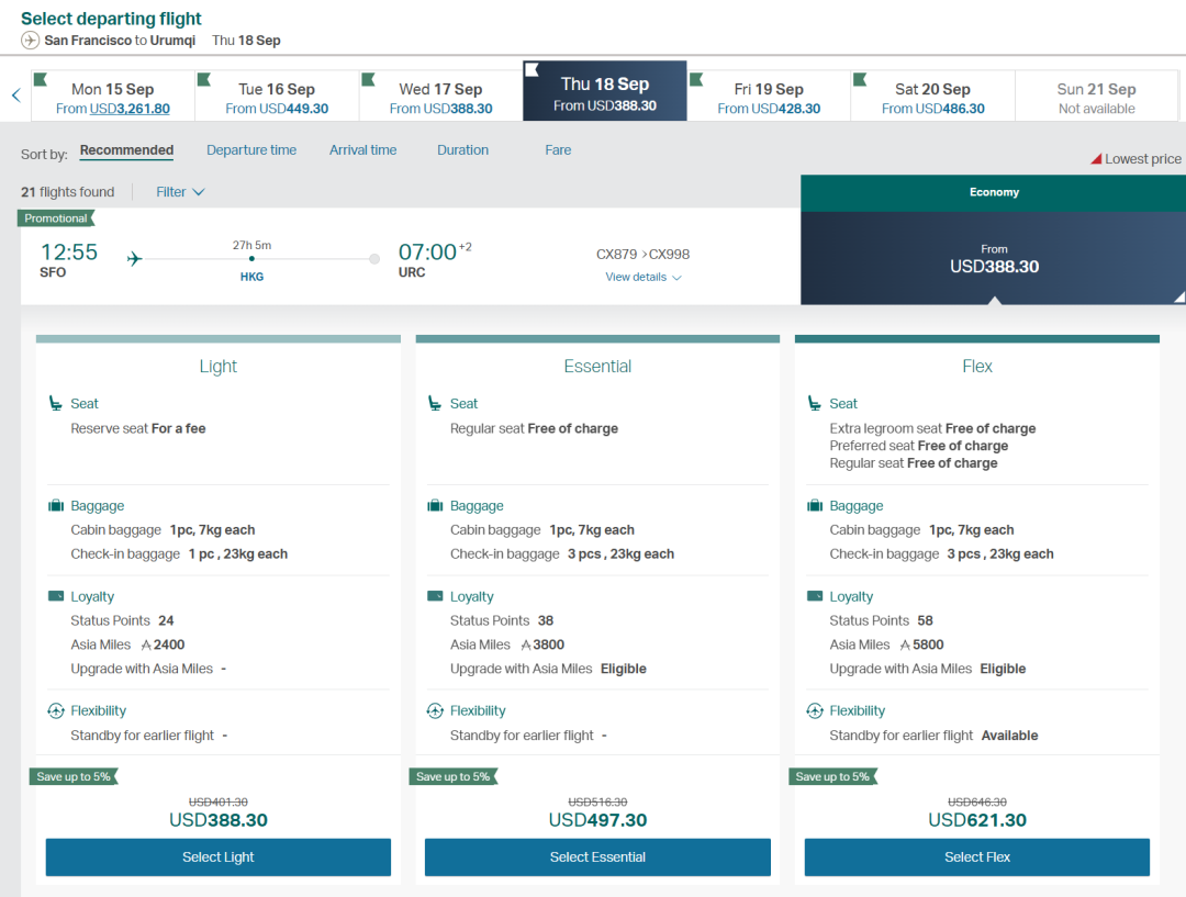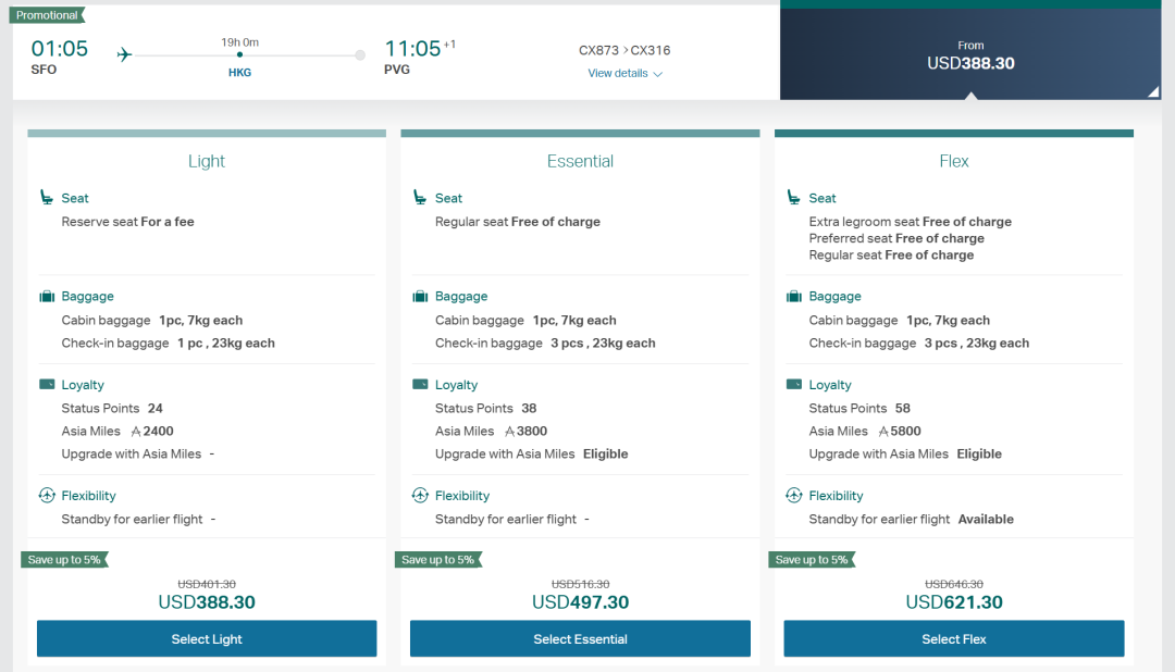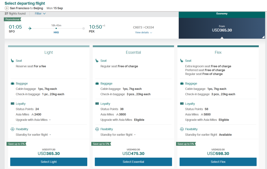 最主要是,价格实惠!从旧金山出发,经香港中转再飞内地,最低只要365美元。虽然需要转机,但行程安排得相当方便。