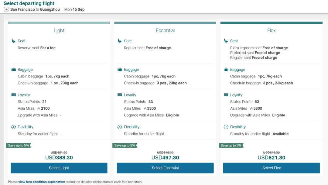 飞广州 – 学生价388.30 美金/ 普通价 401.30美金