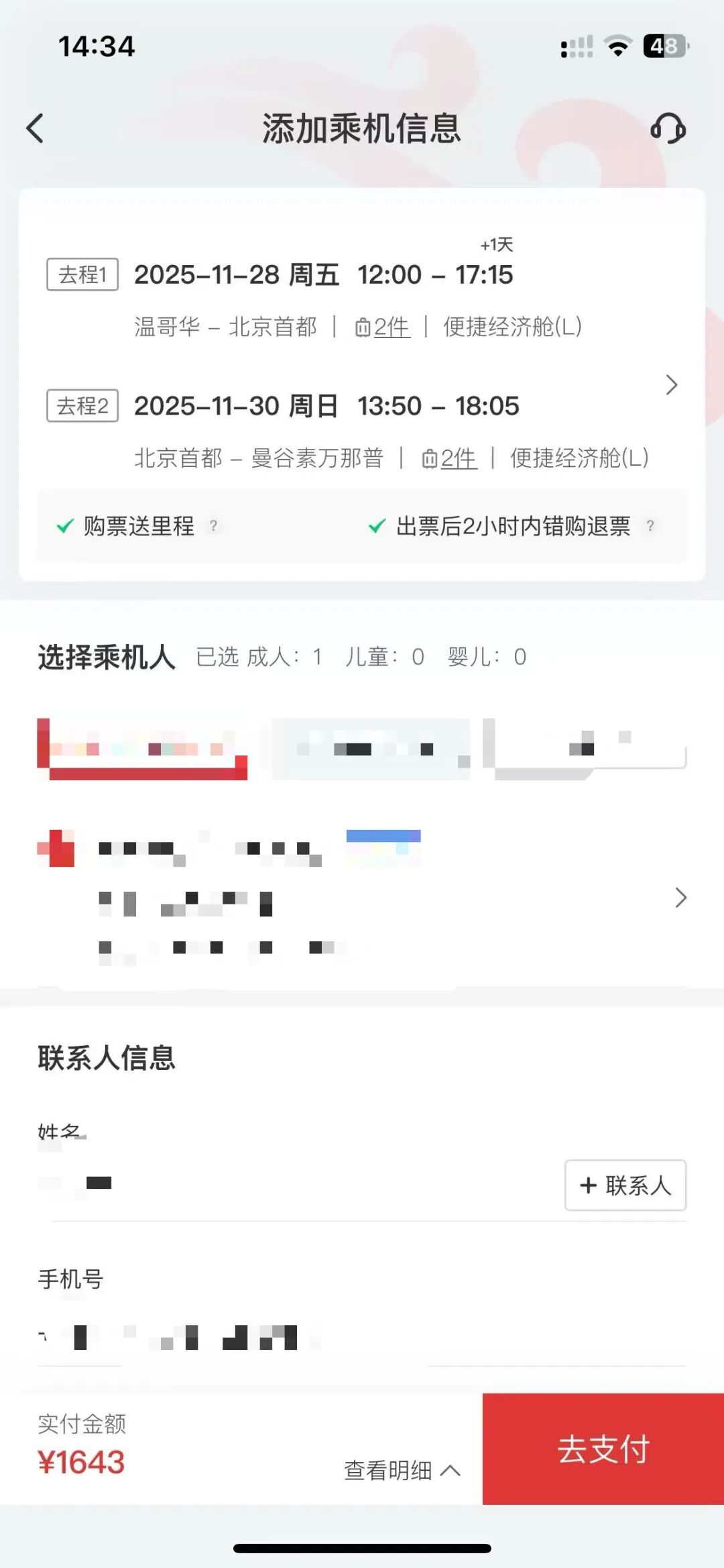 也就是说,可以到了北京以后待最多6晚,再飞曼谷