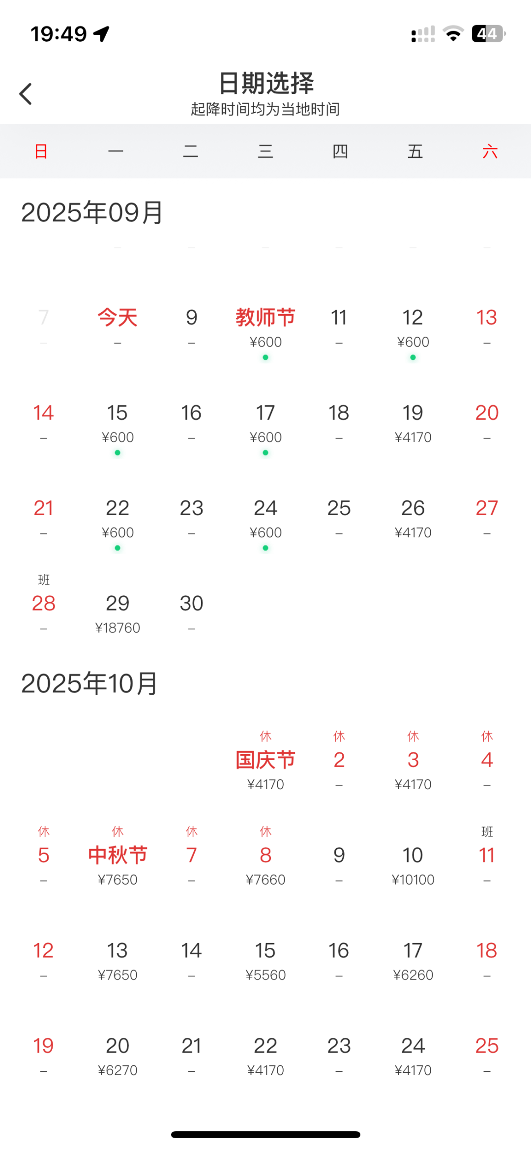 2025年9月10日-24日,10月29日-11月28日的几乎全部周一三五