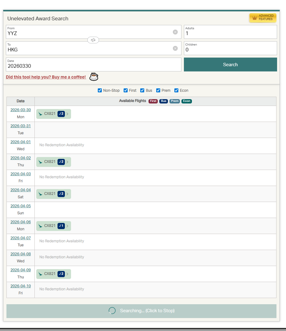 多伦多-香港,单程需要115K国泰里程,燃油费在百余-千余港币。可联程到内地