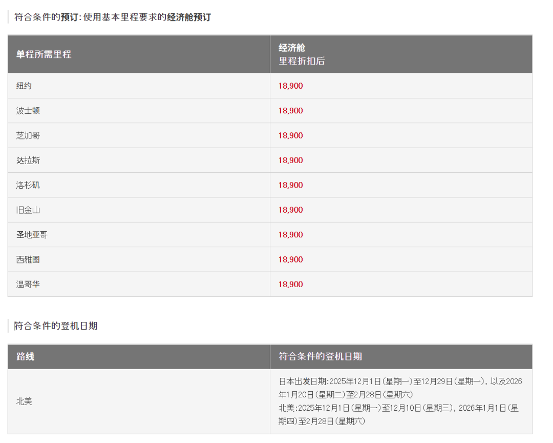 日本航空在黑五有个点数兑换促销,在11月18日-30日使用日航里程订票,可使用促销价兑换,无需注册。参与只有日本-美国、加拿大和多哈。中日不参与。