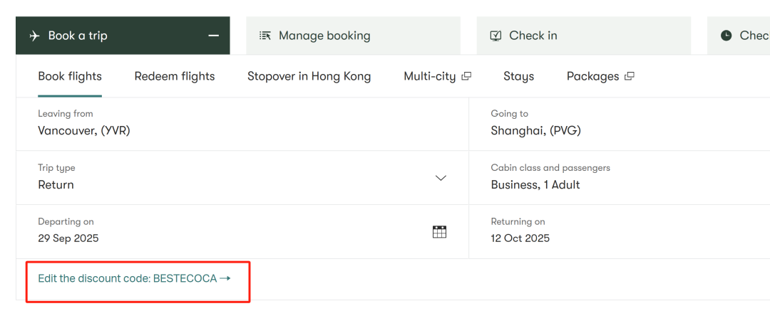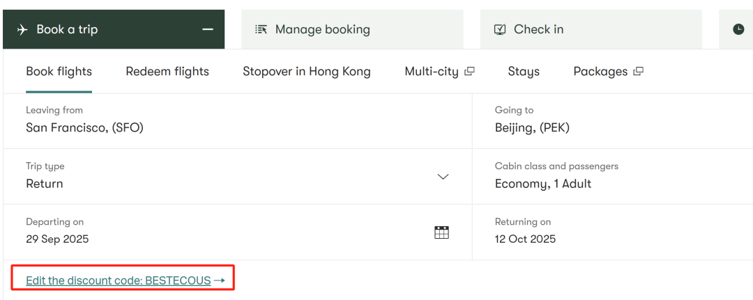 票帝觉得,北美出发的比较厚道,直减100美金/加币比较直接~ 当然,如果你有香港直飞的刚需,85折的优惠也能让你省一些钱。