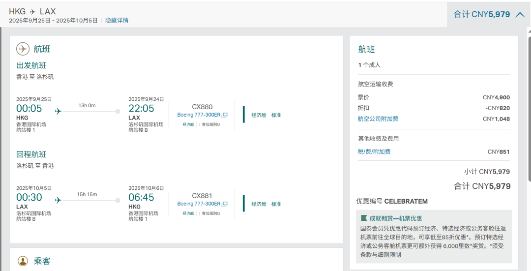 如下图,本身light轻简的票价格是5918港币(只能带1件行李),但叠上折扣,标准的价格也就是5979港币(可以带2件行李)