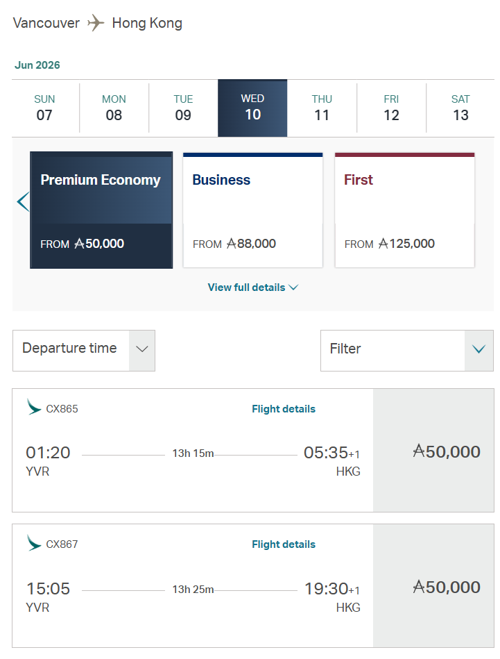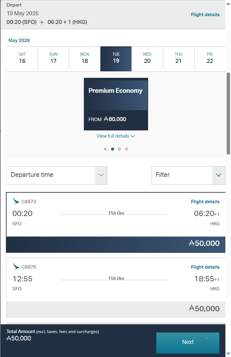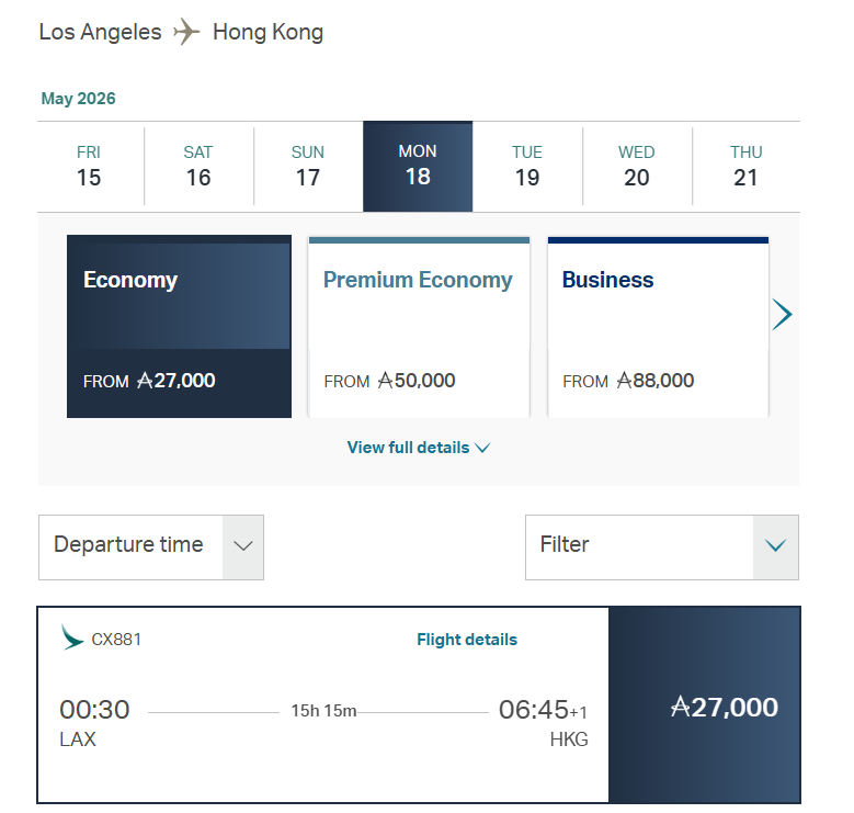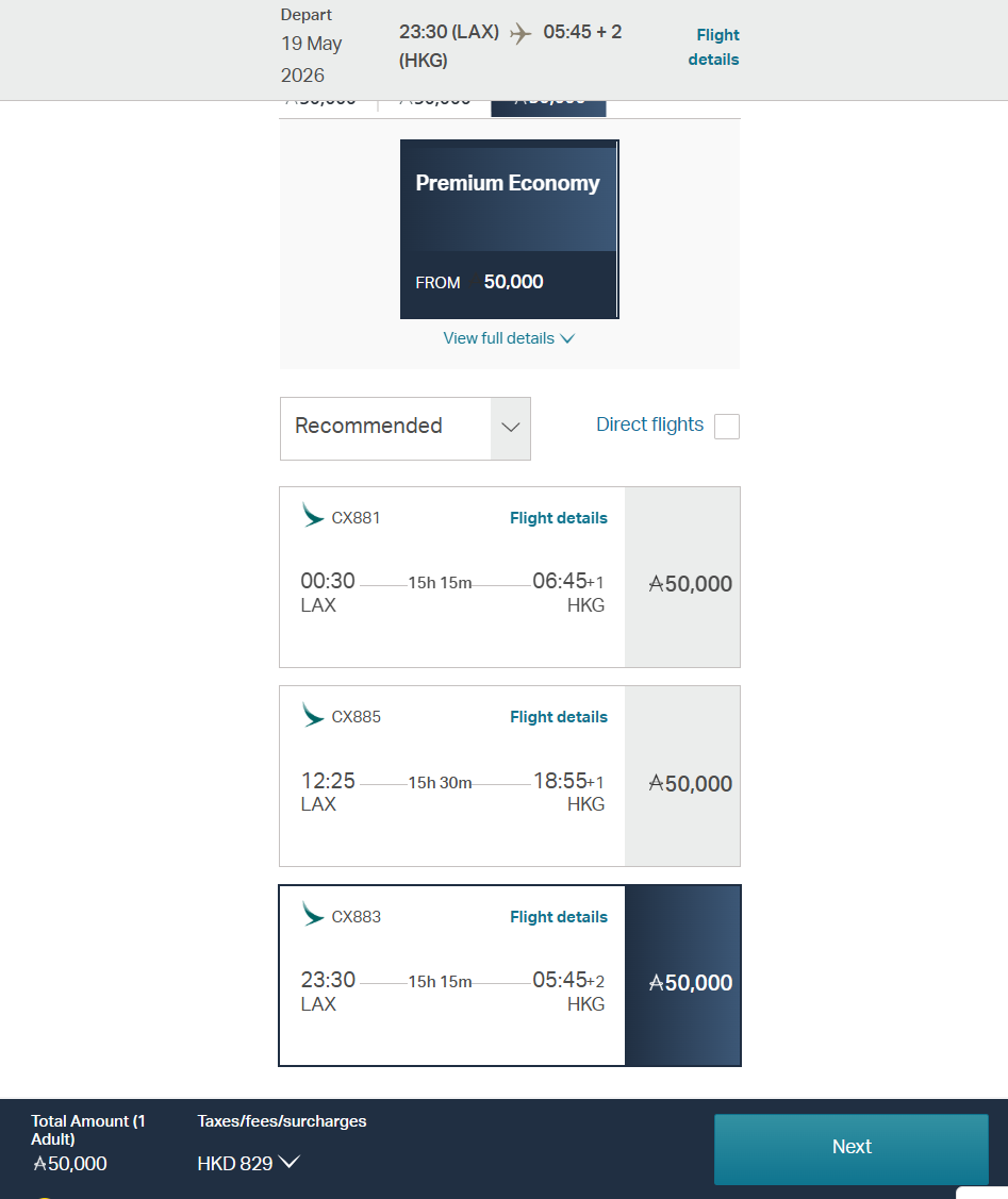 5.19 洛杉矶-香港 豪华经济舱直飞