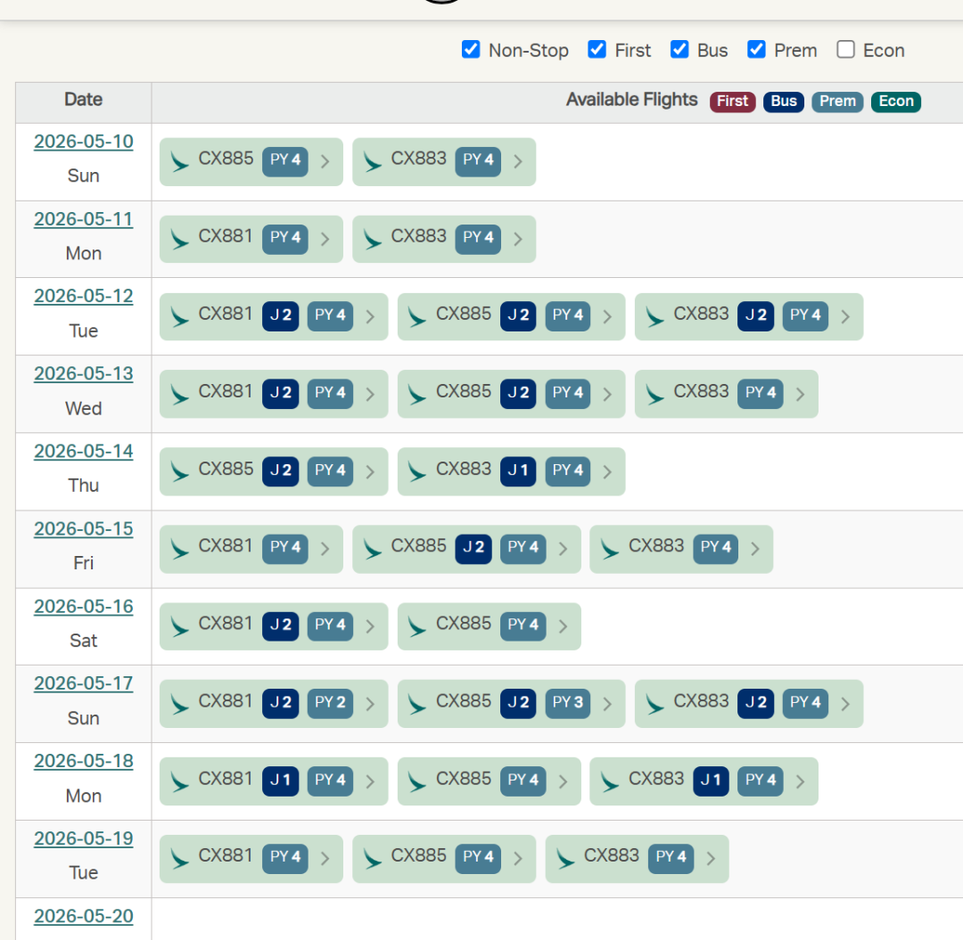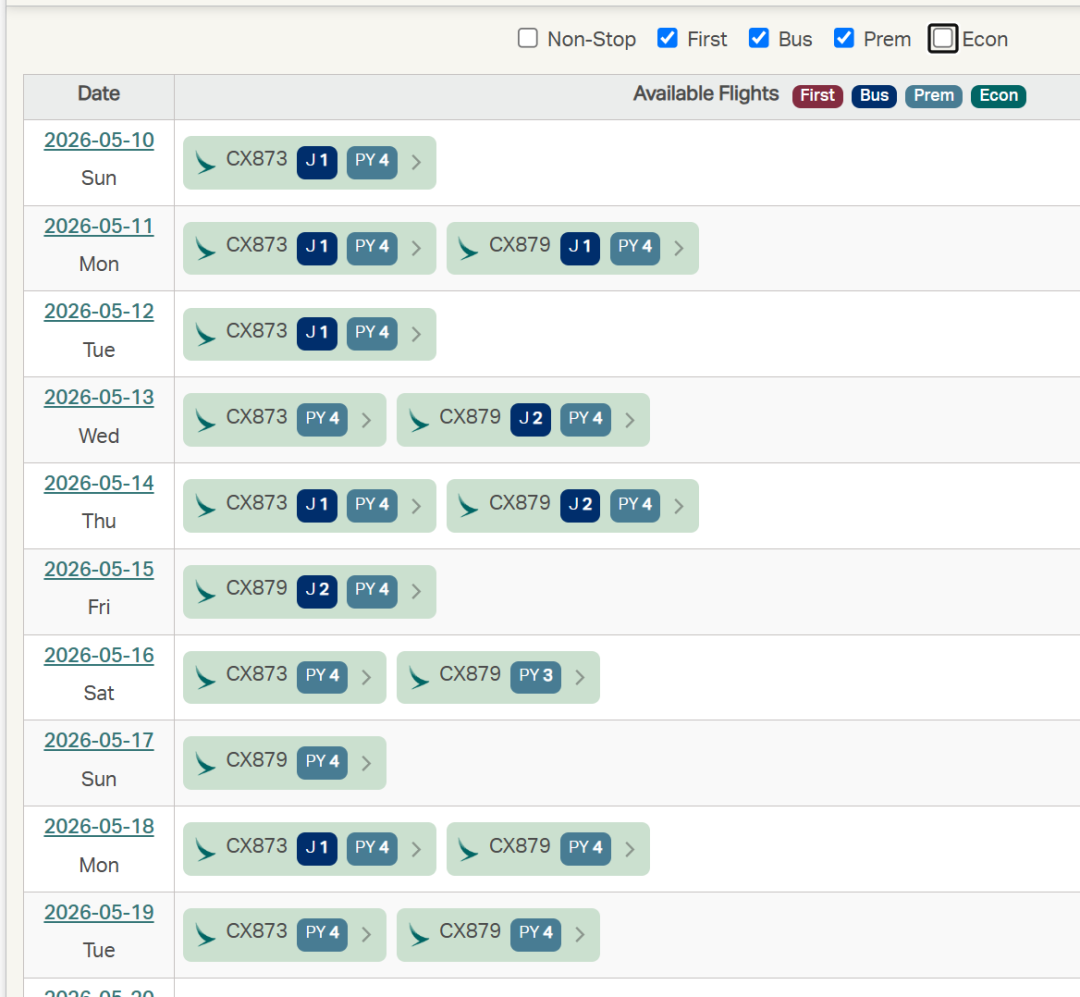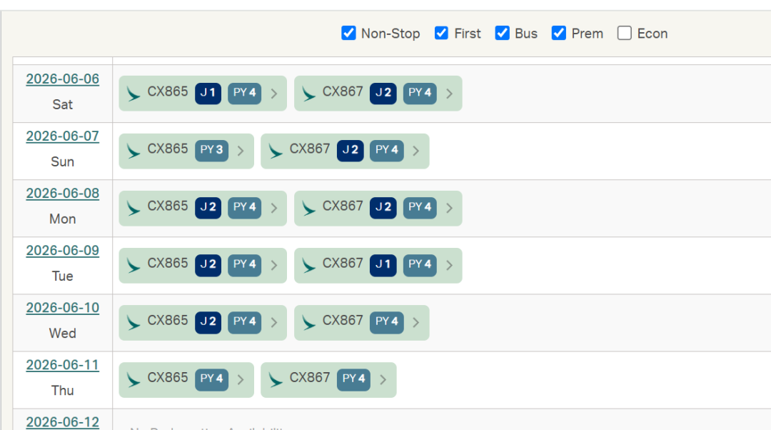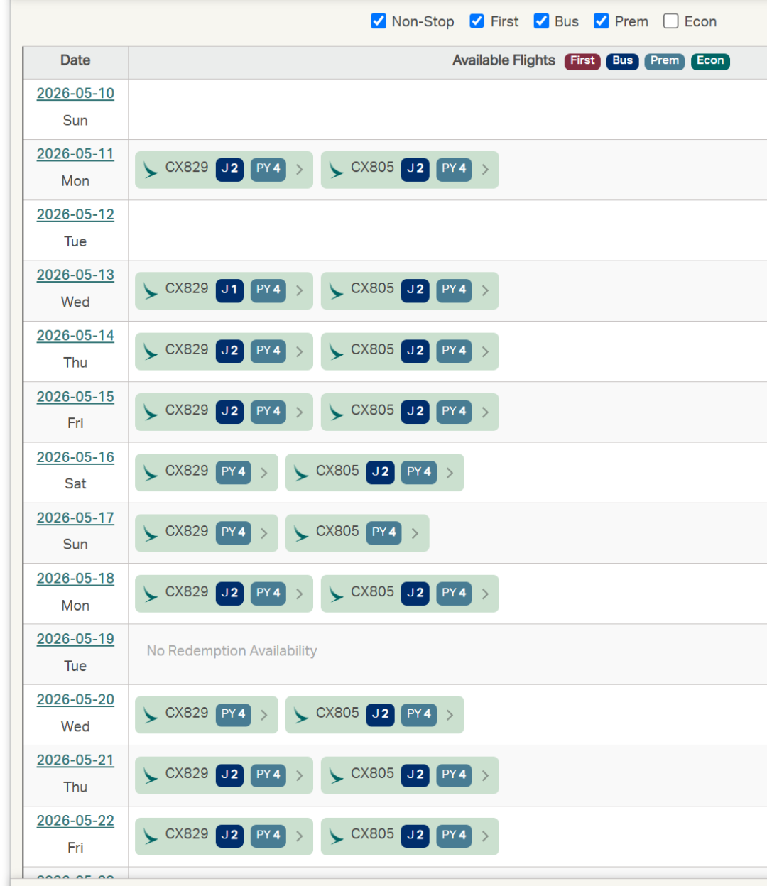 4)本次商务舱、豪华经济舱放票没有给伙伴,因此AA/AS/AY等伙伴航空看不到,也换不了。 经济舱可以。