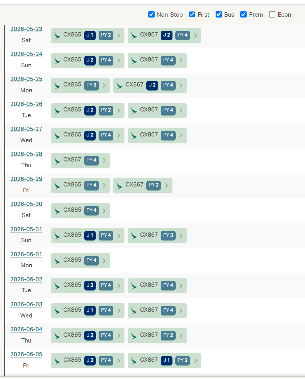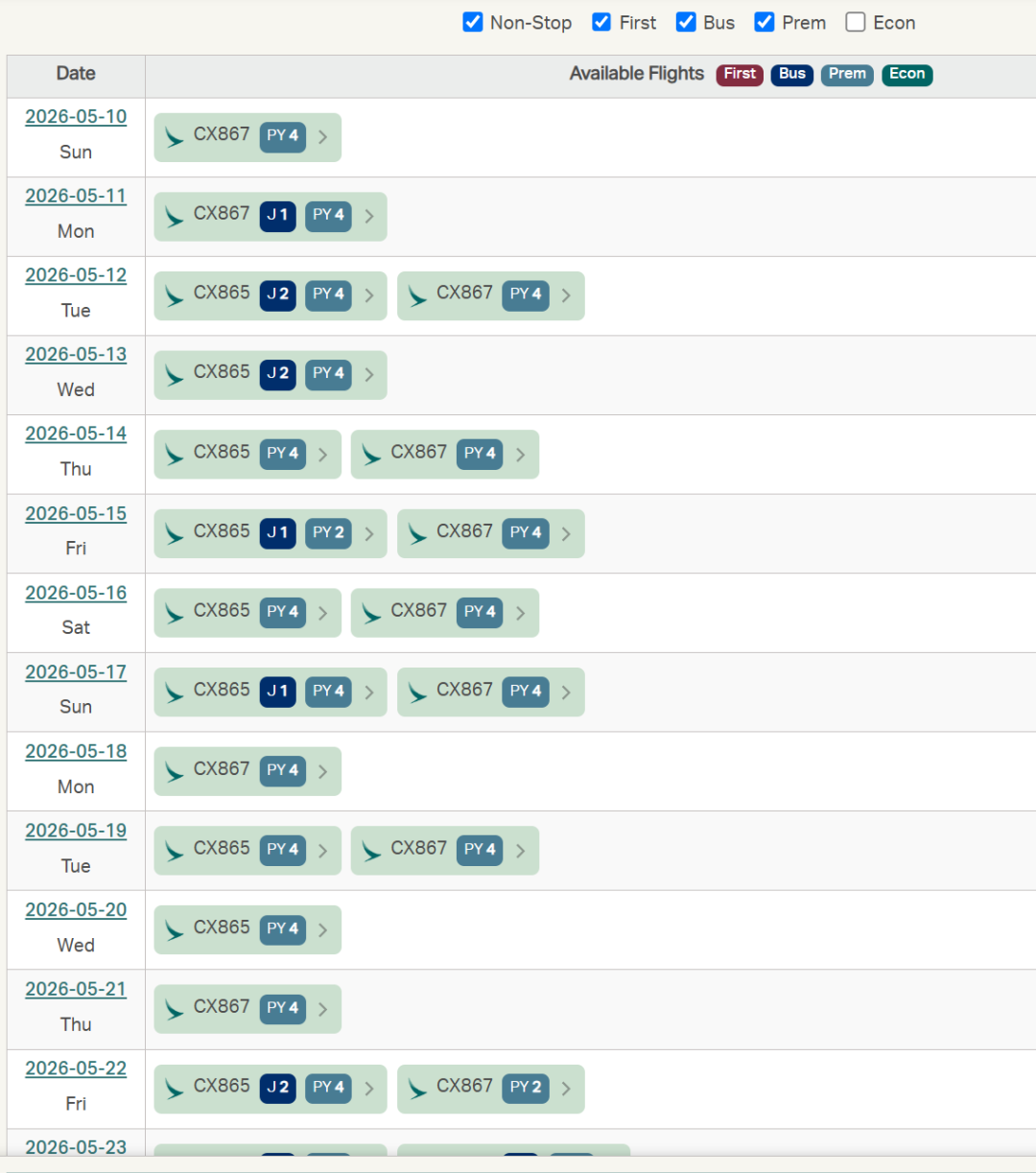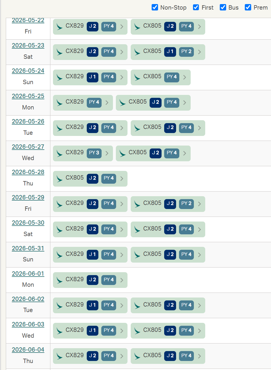 4)本次商务舱、豪华经济舱放票没有给伙伴,因此AA/AS/AY等伙伴航空看不到,也换不了。 经济舱可以。