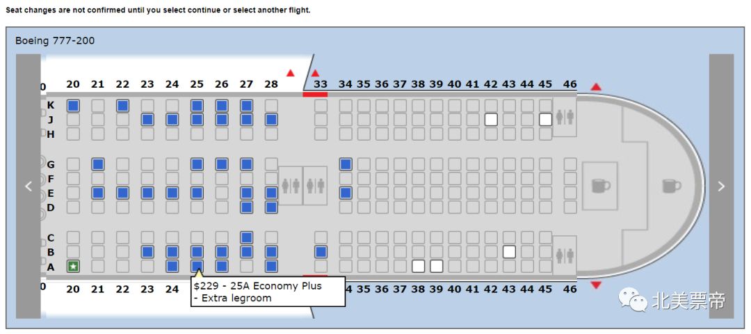 北美三大航空都拥有功能极强的手机App,即使已到达登机口临近登机,也可以实时查看座位图、更改座位。而在登机之前,机上座位仍将发生频繁的变化: