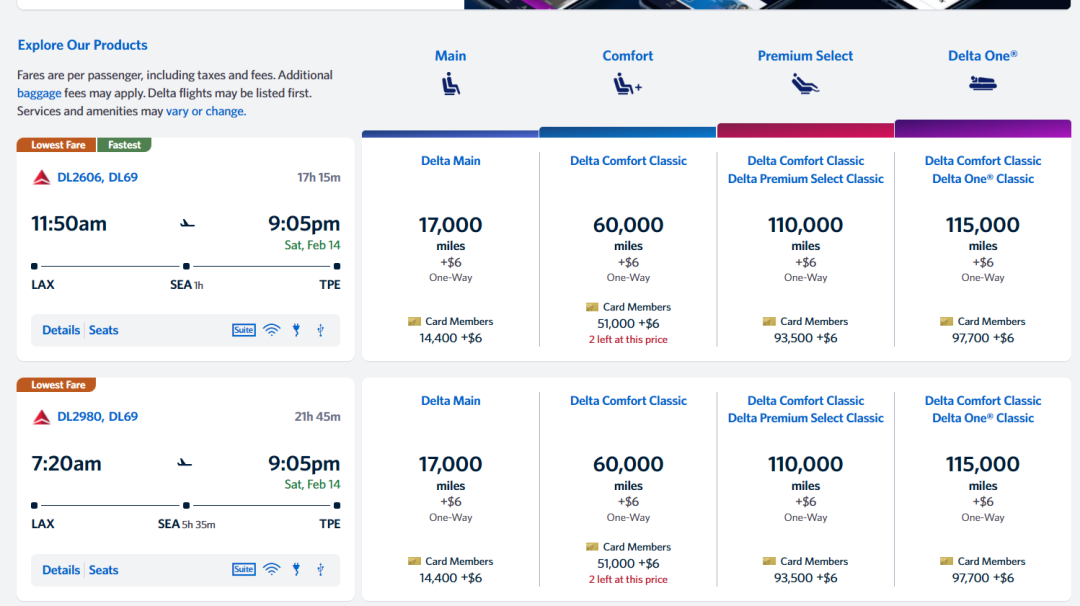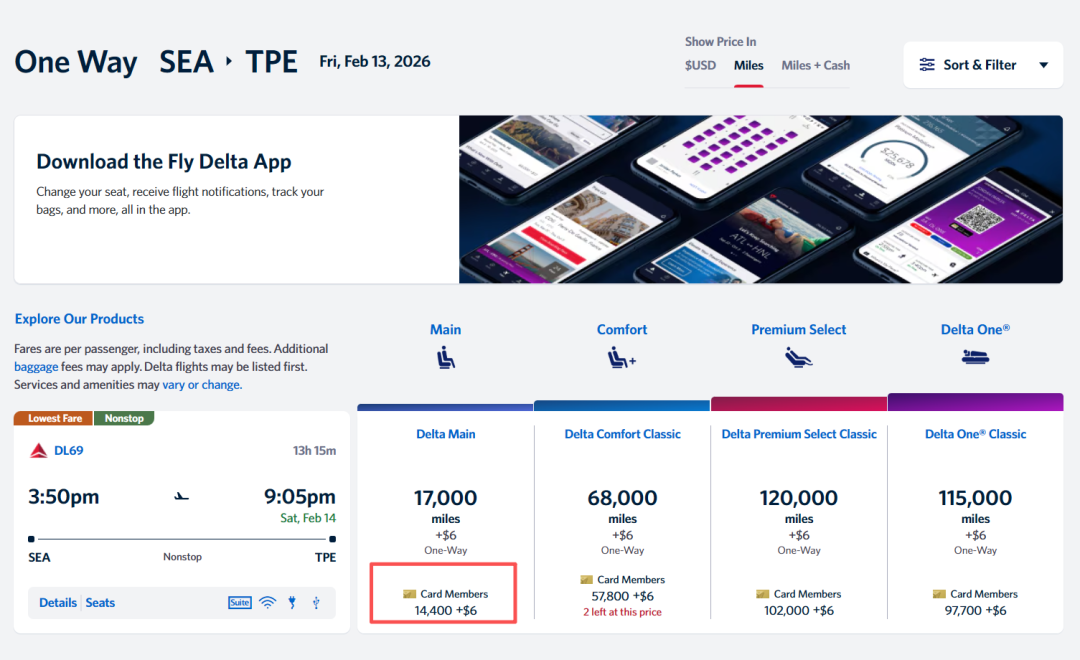 2)若持有美版的amex 达美联名卡(需要是金卡及以上,有年费的),相关联的Skymiles账号可以额外享受15%里程减免,也就说最低14400 miles 就够了~ 【目前有5万点开卡礼,deal一般,但认为省下的里程是值得的,可以上,申请链接在“阅读原文”里】