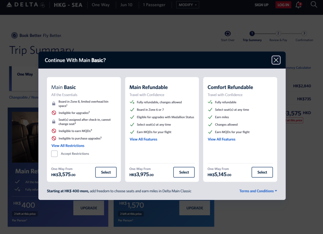 选择达美官网出票,然后选择适合自己的票价就行了~