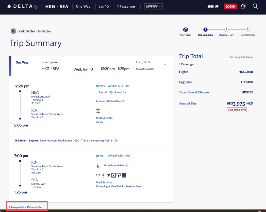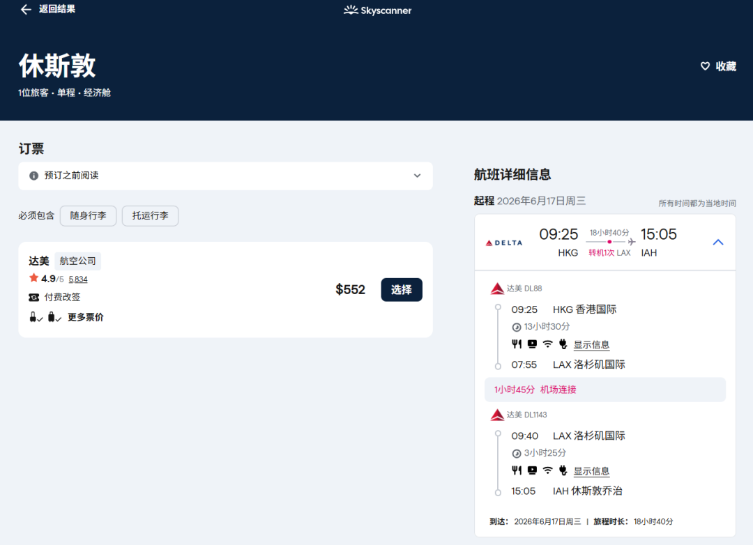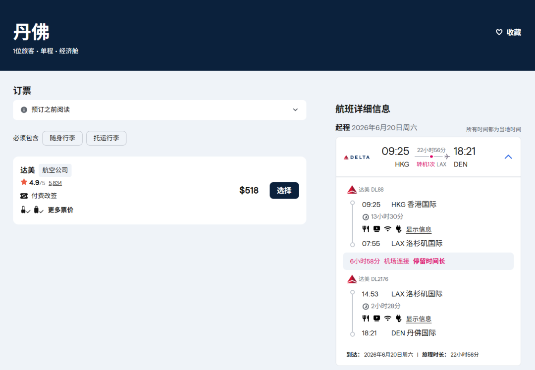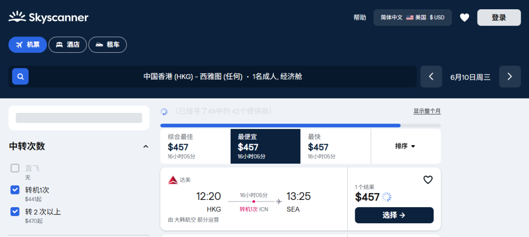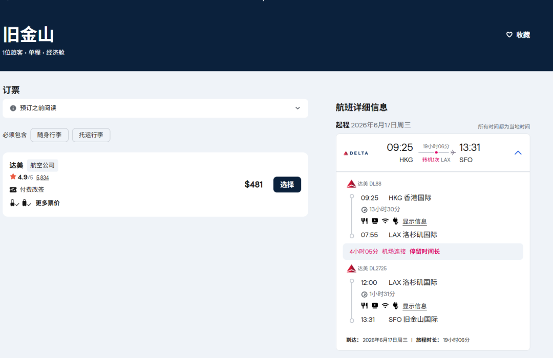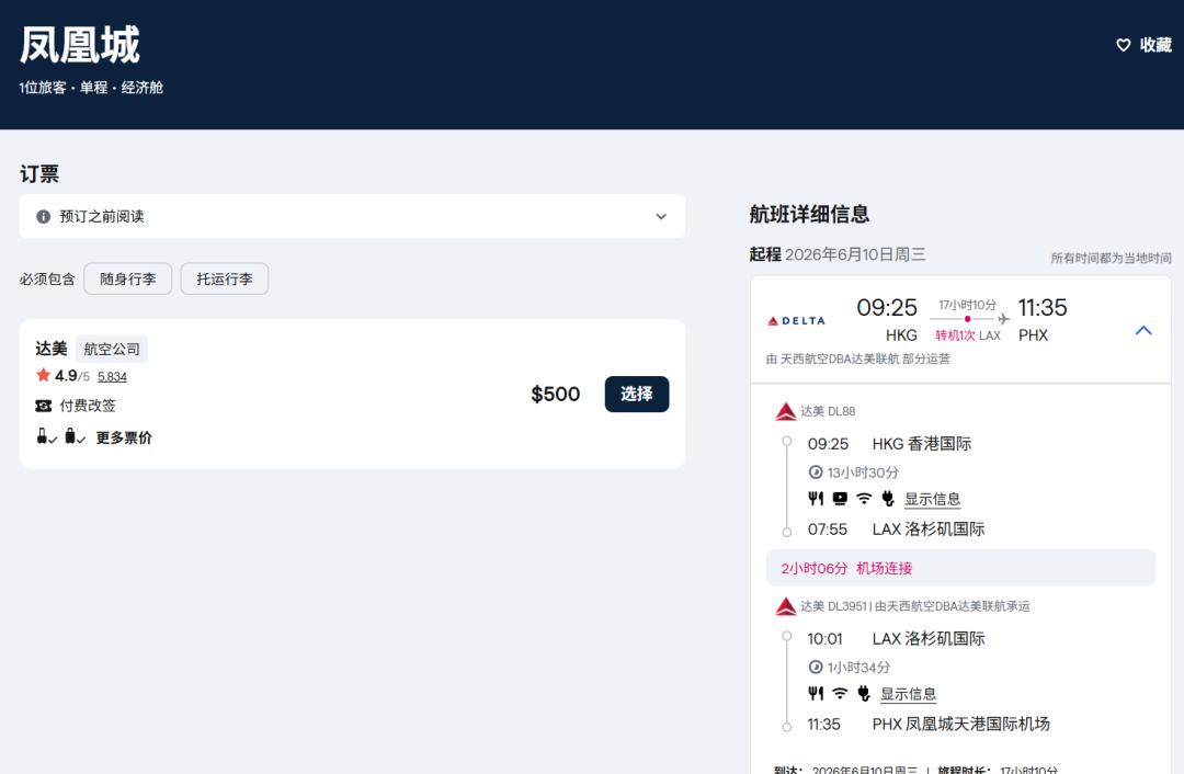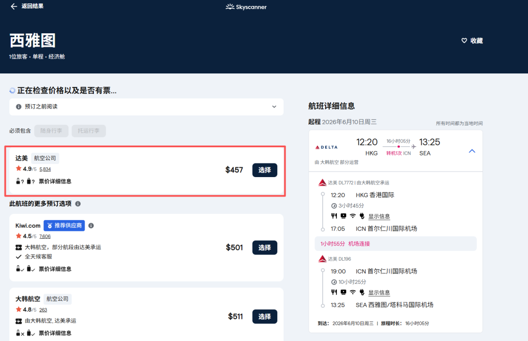 虽然航班香港-洛杉矶航班是6月8日才开始,但运价从6月1日就有了~前期通过与大韩航空的伙伴关系,经由首尔转机。