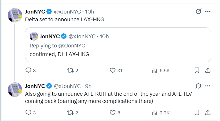 消息来源来自Airliners.net(A网),在讨论达美2025年航线网络的主题帖下,最开始大家讨论的是两周前西雅图新的skyclub开通,达美宣布开航西雅图-罗马/巴塞罗那。然后另外一位网友说,能不能看看西雅图出发的亚洲航线:新加坡、曼谷、胡志明市、马尼拉、香港、大阪和北京都需要“达美的爱”。