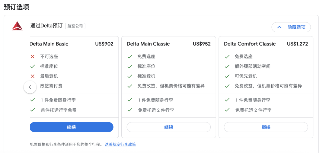 (截图来自机票网站/航空公司官网)