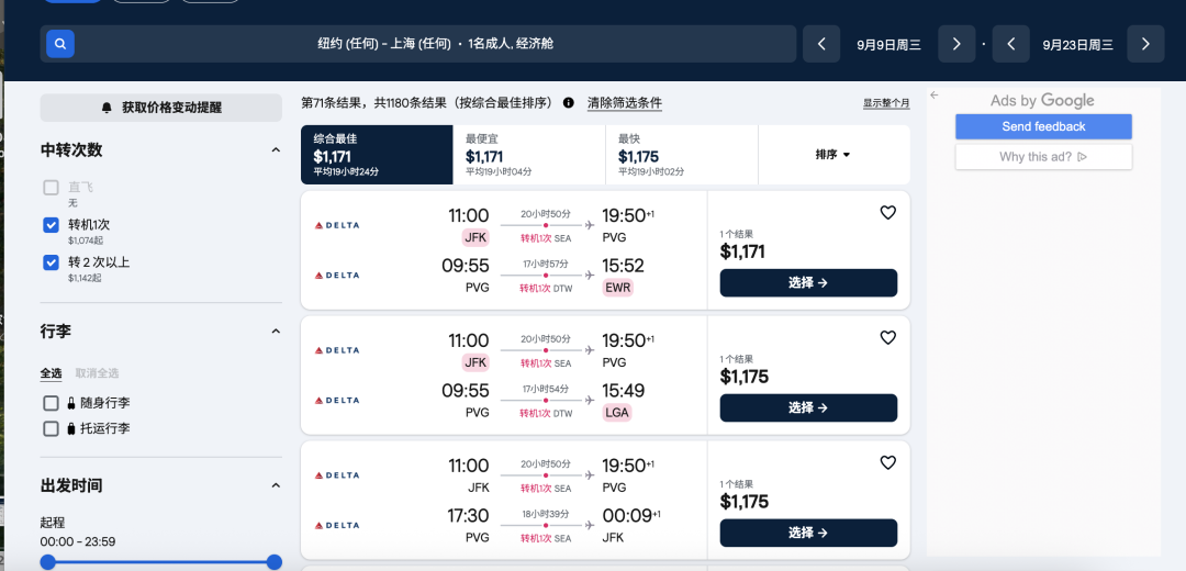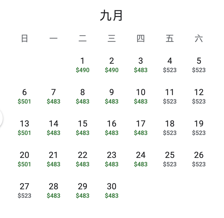 美国出发:2026年9月,周一-周四出发最便宜