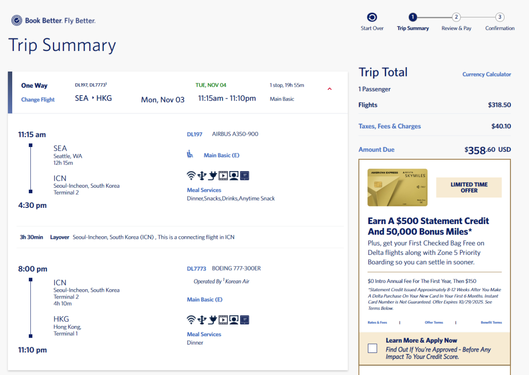 2)这张票在达美官网可以出,也建议在达美官网出~ 因为可以用上delta 礼卡、AMEX offer(如有)、delta e-credit等。