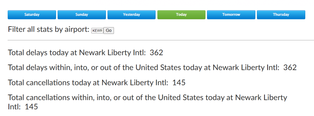 就我在写文章时,纽瓦克机场因地面延误,起飞时间平均延续343分钟,约6小时……