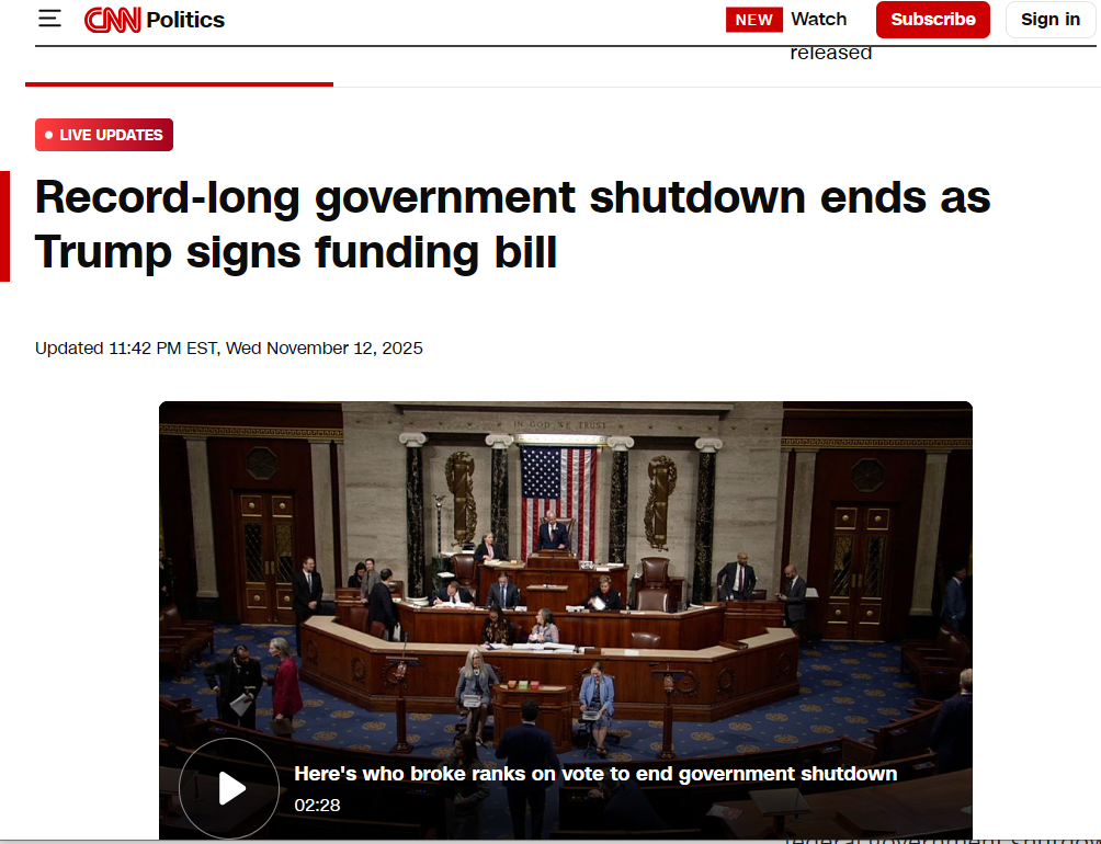经历了43天的”史上最长”罢工,2025年11月12日晚间,民主党和共和党终于在政府拨款上达成了一致。美国总统特朗普也随即签署了法案。于是,国家公园将恢复正常运营,负责美国空中交通的空管们、负责美国入境的CBP们,负责机场安检的TSA们,终于可以不再“为爱发电”了,他们最快可以在24小时内收到工资。
